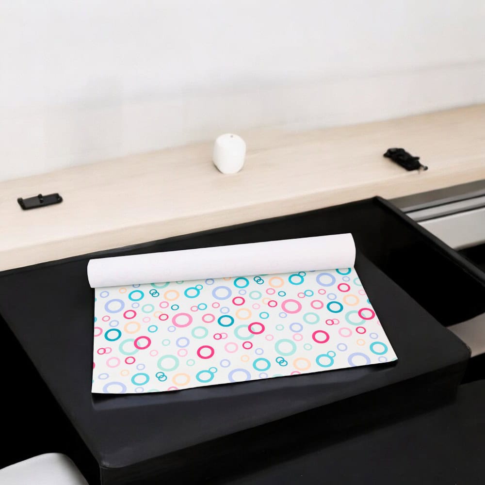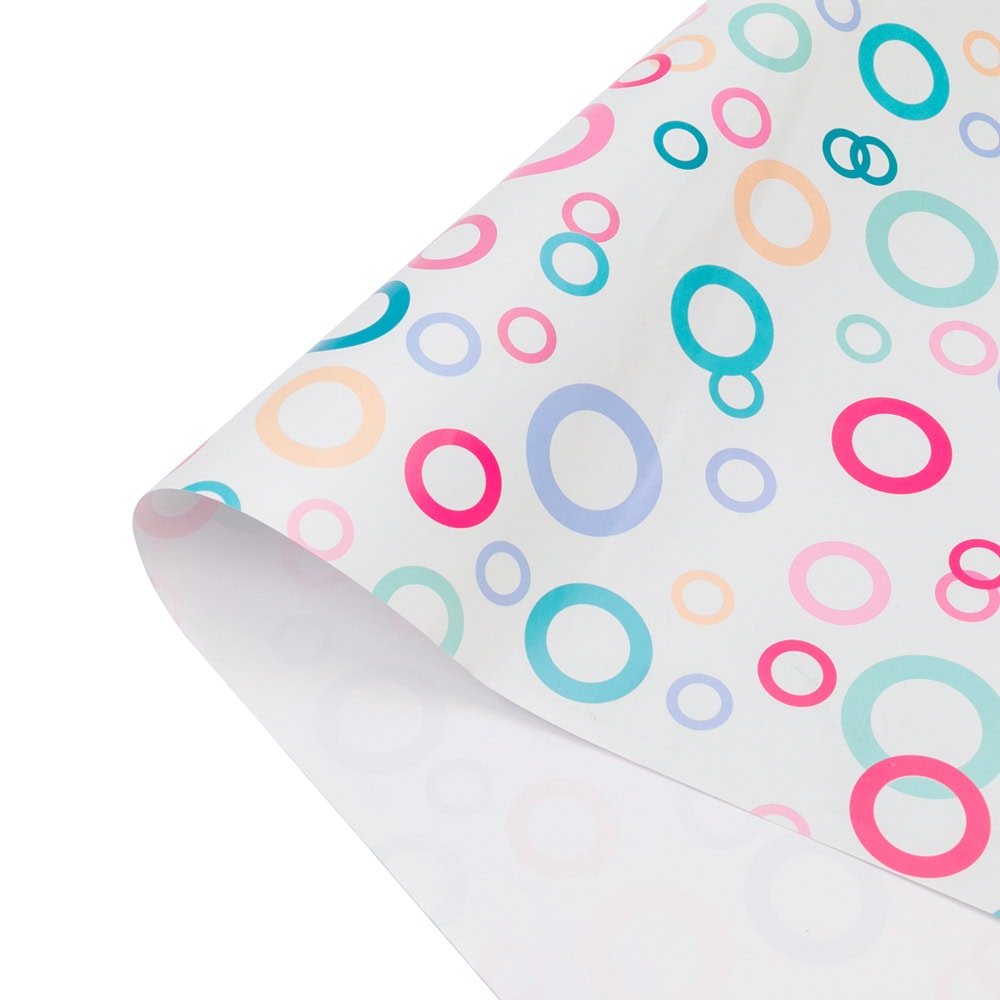 Foi hârtie de ambalat colorate - model 2 cercuri colorate, oferă o soluție practică și estetică pentru diverse nevoi de împachetare și decorare.