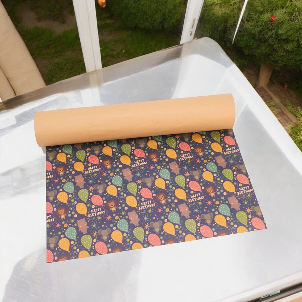 Foi hârtie de ambalat kraft - model 2 baloane, oferă o soluție practică și estetică pentru diverse nevoi de împachetare și decorare.