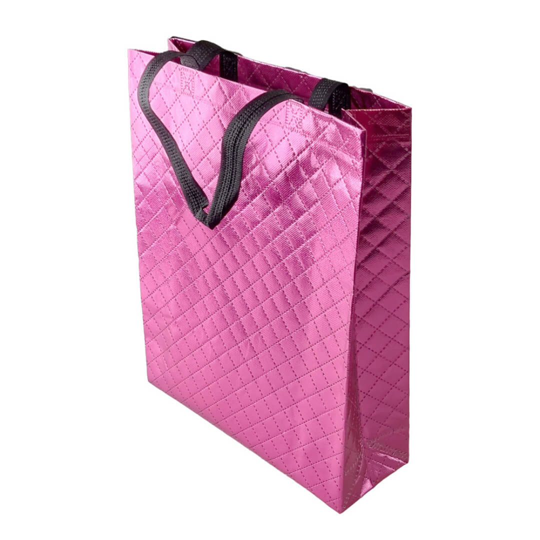 Geantă lucioasă non-woven cu țesătura romb 30x36cm - mov, emană eleganță și practicitate într-un design contemporan.