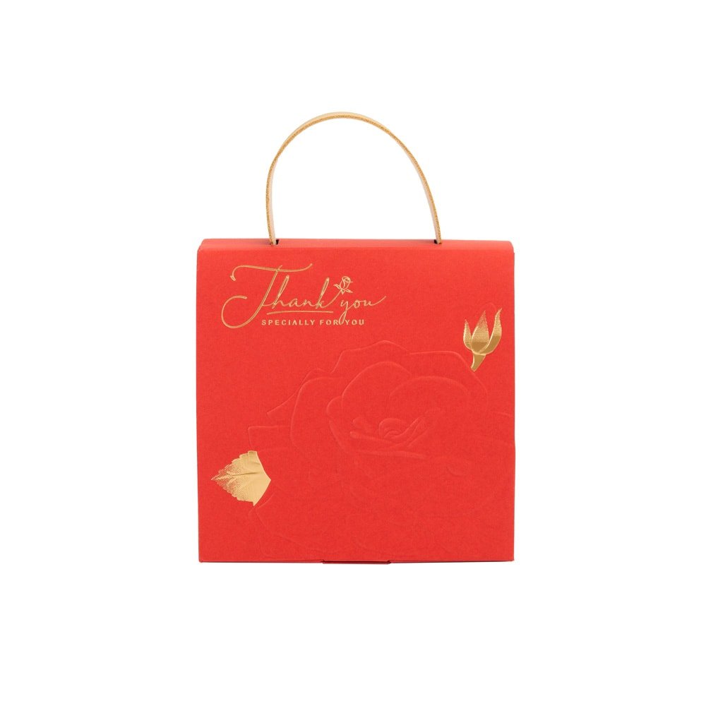 Gentuță cu mâner model trandafir și mesaj Thank You - Roșu (set 50 buc)