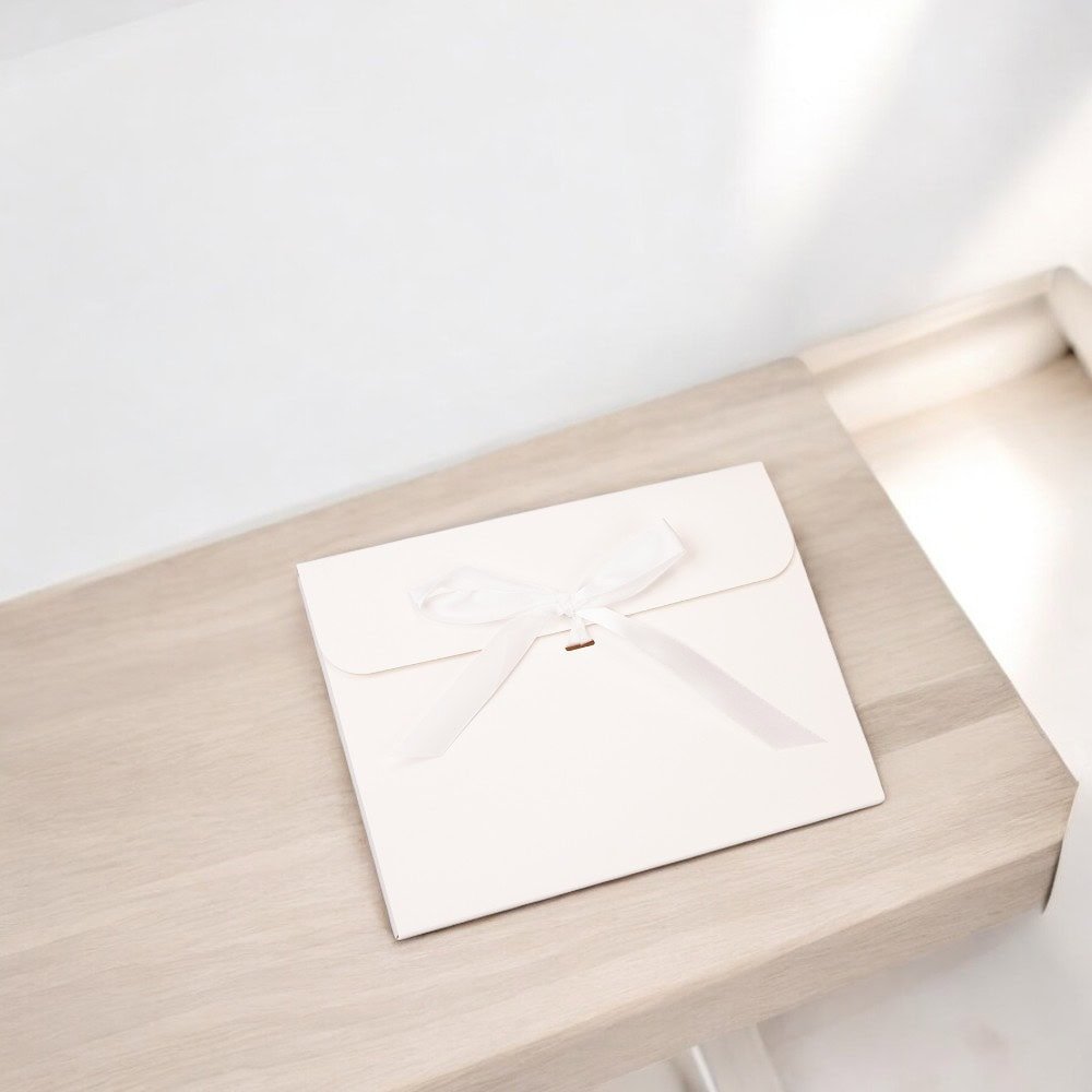 Plic hârtie cu panglică - alb