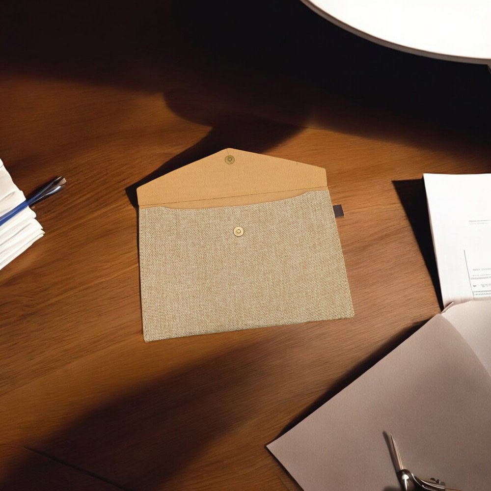Plic textil cu capsă magnetică - bej este un produs elegant și funcțional, acest plic textil este soluția perfectă pentru organizarea documentelor, a accesoriilor mici sau chiar a unor mici cadouri. Confecționat dintr-un material textil durabil și plăcut la atingere, plicul îmbină estetica minimalistă cu practicabilitatea de zi cu zi