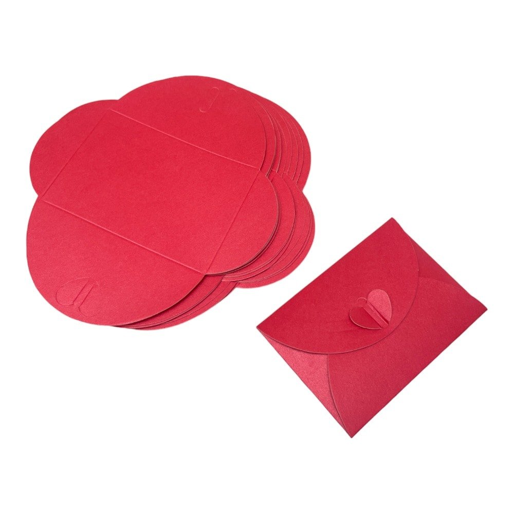 Plicuri hârtie cu închidere în formă de inimă - roșu sunt perfecte pentru a adăuga o notă personală oricărui mesaj. Fabricate din hârtie de calitate superioară, plicurile sunt durabile și elegante, cu un design unic în formă de inimă care permite o închidere sigură și atractivă.