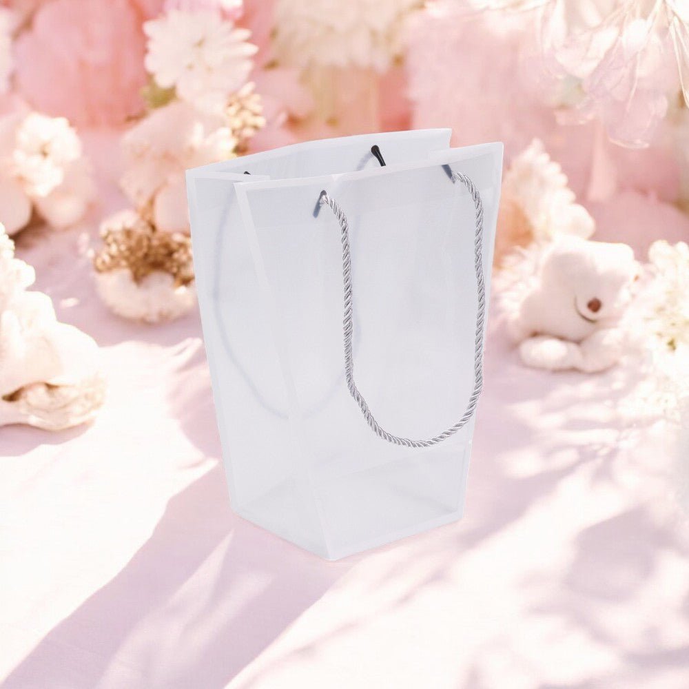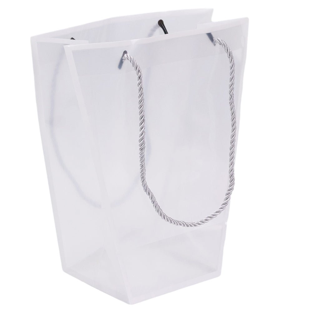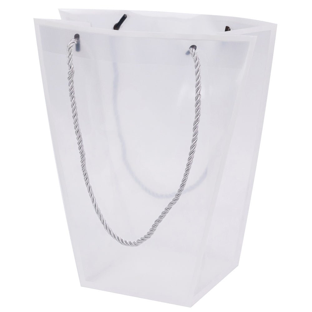 Pungă trapez din plastic cu mânere din sfoară - alb este o soluție de ambalare versatilă și elegantă, perfectă pentru diverse ocazii. Fabricată dintr-un material transparent rezistent, aceasta permite vizualizarea conținutului, adăugând un plus de atractivitate cadoului dumneavoastră.