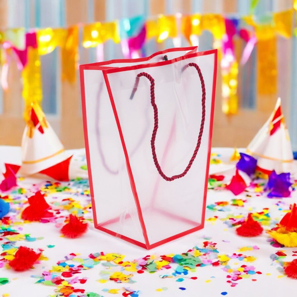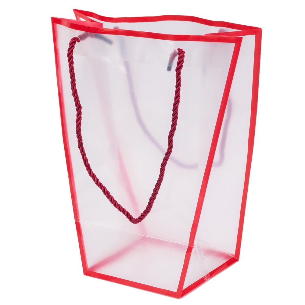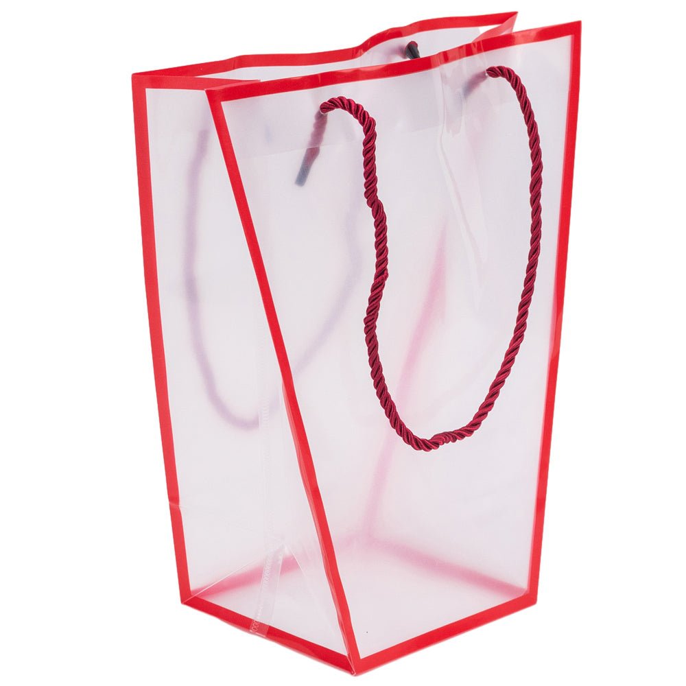 Pungă trapez din plastic cu mânere din sfoară - roșu este o soluție de ambalare versatilă și elegantă, perfectă pentru diverse ocazii. Fabricată dintr-un material transparent rezistent, aceasta permite vizualizarea conținutului, adăugând un plus de atractivitate cadoului dumneavoastră.