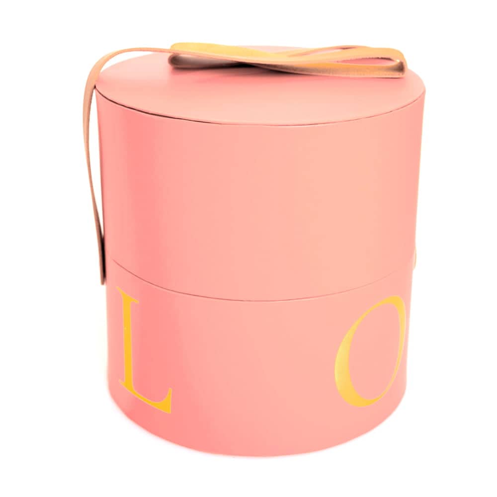 Set 2 cutii cilindrice cu mâner model Love - roz