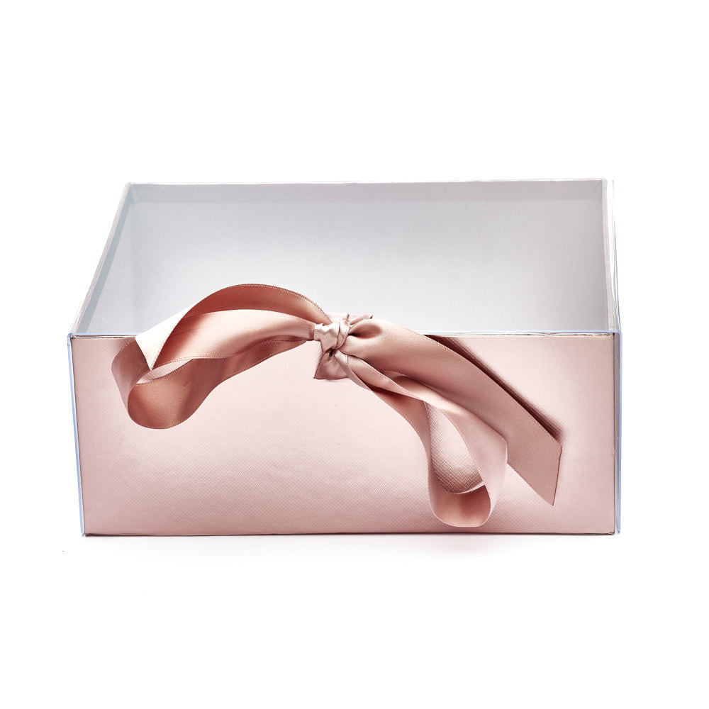 Set 2 cutii dreptunghiulare cu fereastră transparentă și panglică - roz