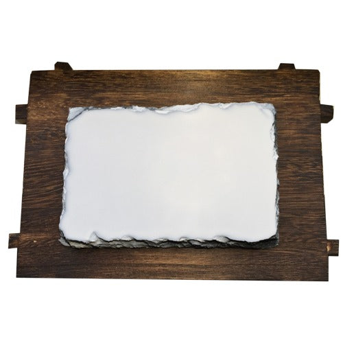 • Placa din ardezie de culoarealba cu model "rocarupta". Ardezia este o piatra naturala foarte folosita in ultimii ani. Placa de ardezie este acoperita de un strat de lac de sublimare ce permite imprimarea de calitate.