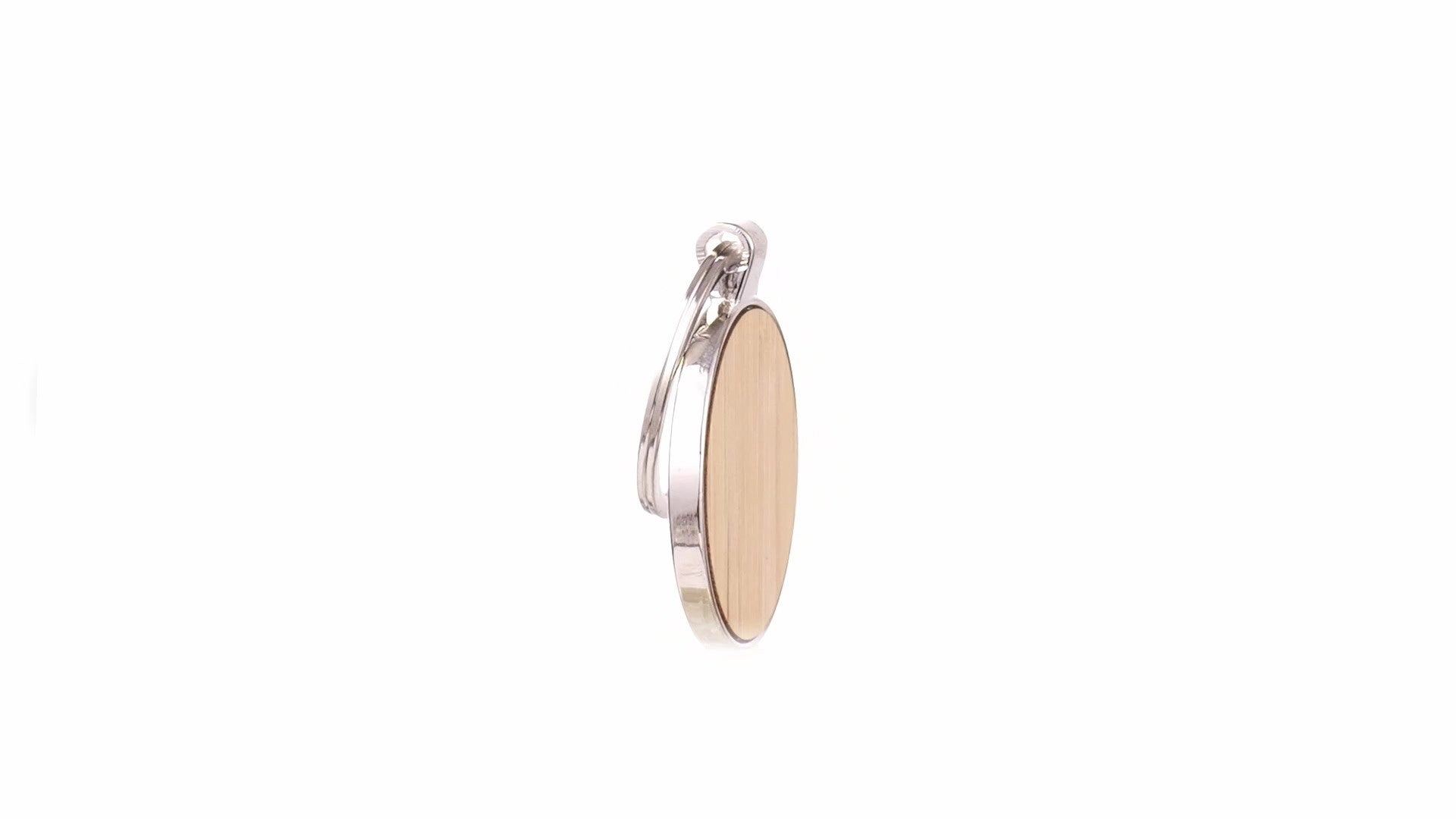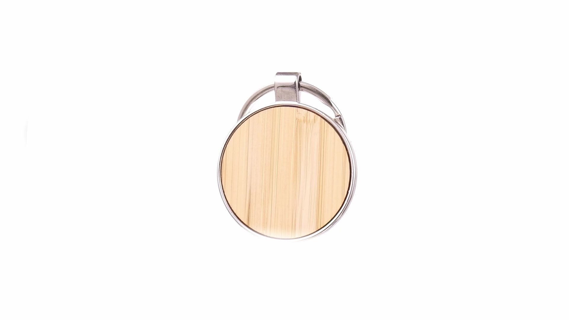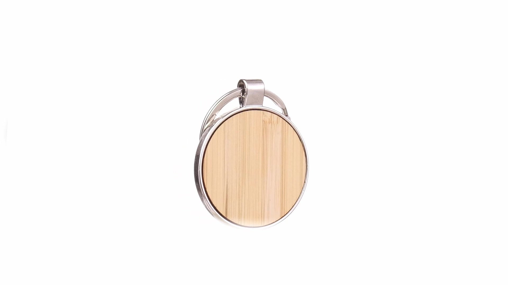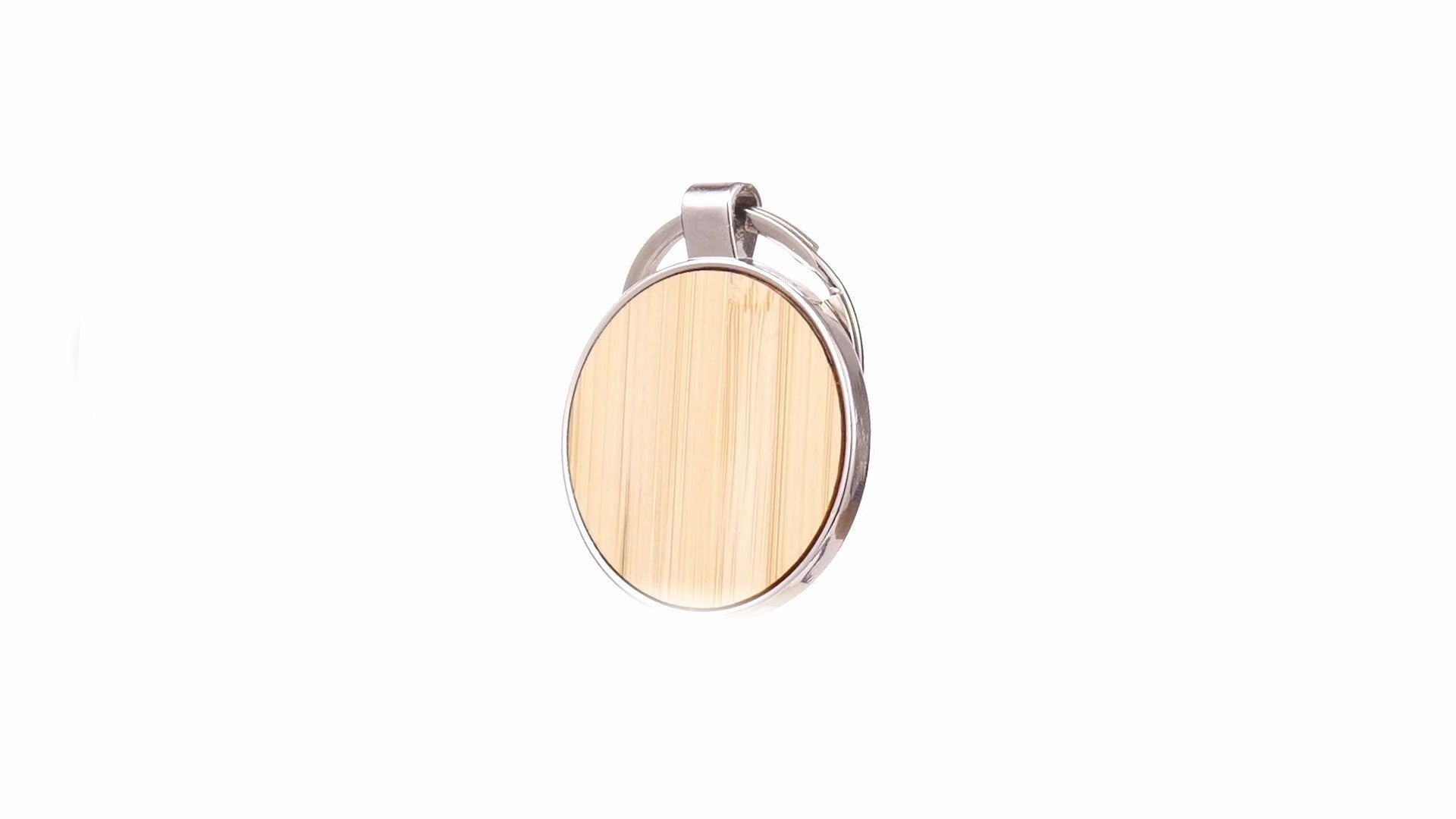 • Breloc metalic cu insertie de lemn de bambus in forma rotunda