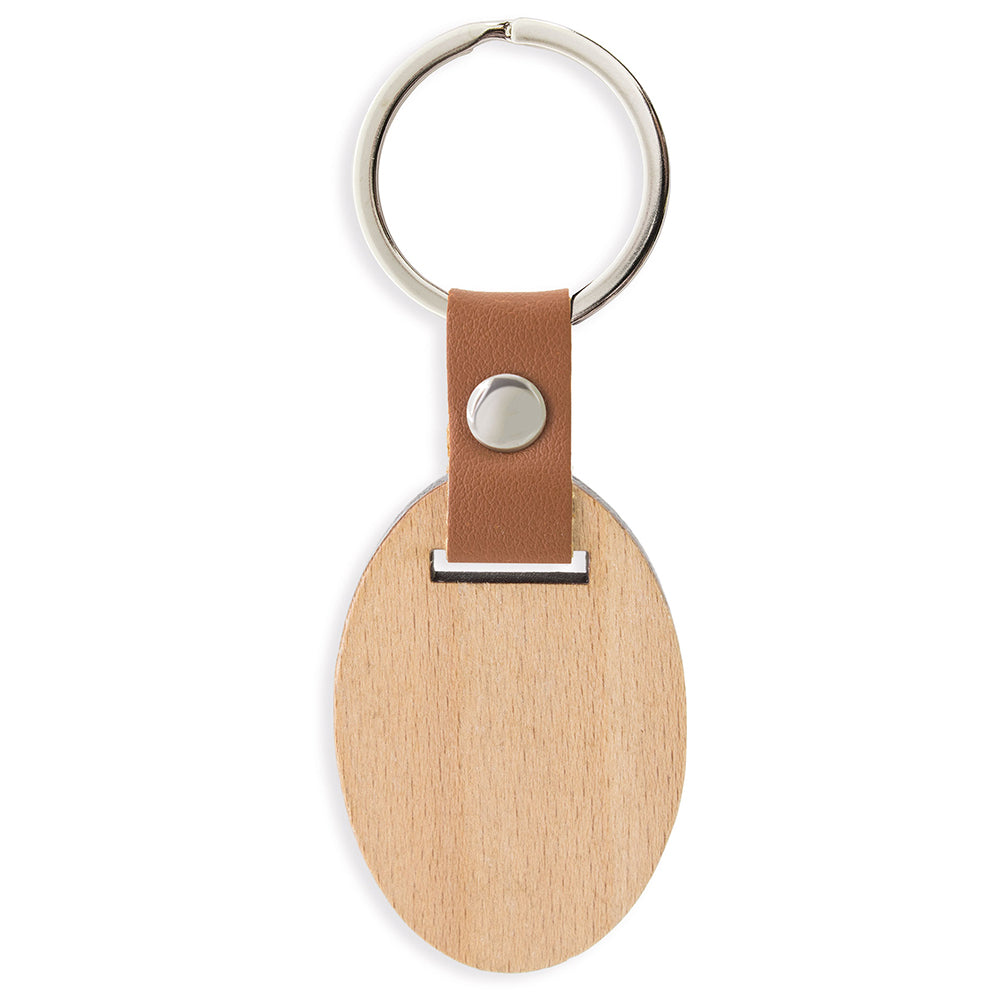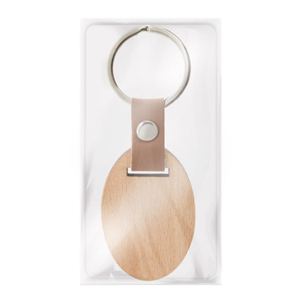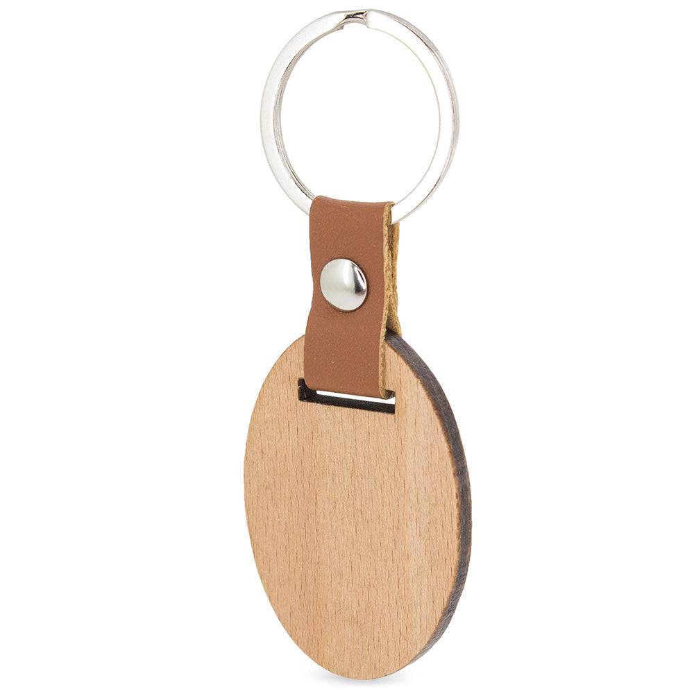 - Breloc fabricat din placaj de lemn cu inel metalic