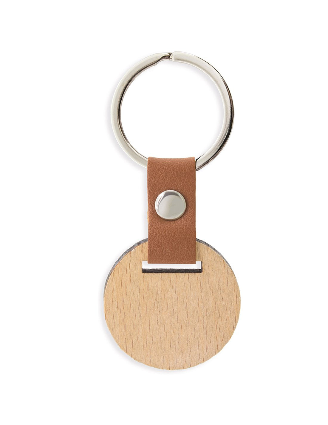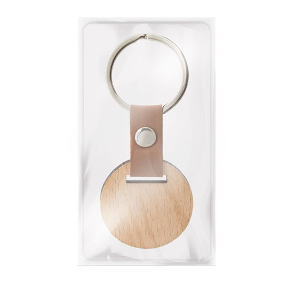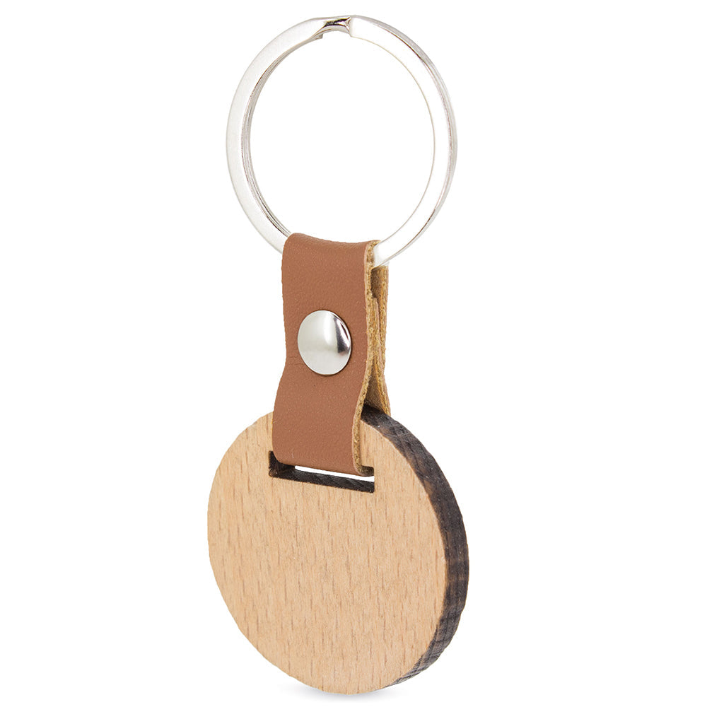 - Breloc fabricat din placaj de lemn cu inel metalic