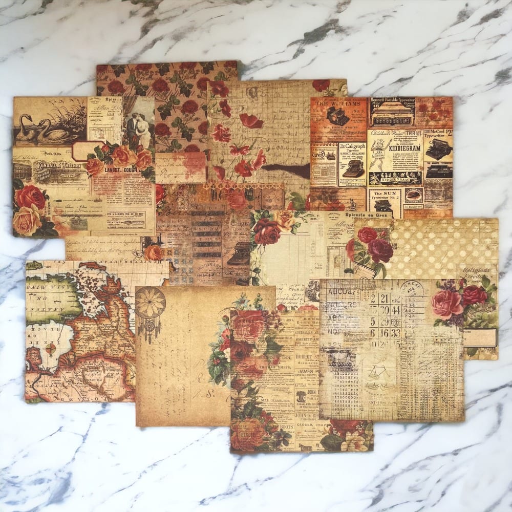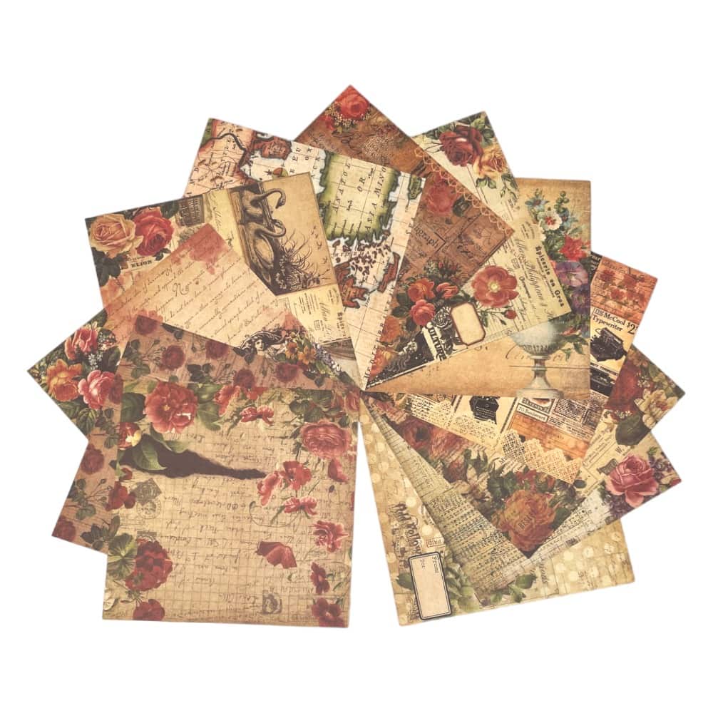 Set foi hârtie creativă 15x15 cm - Model Vintage (set 12 foi)