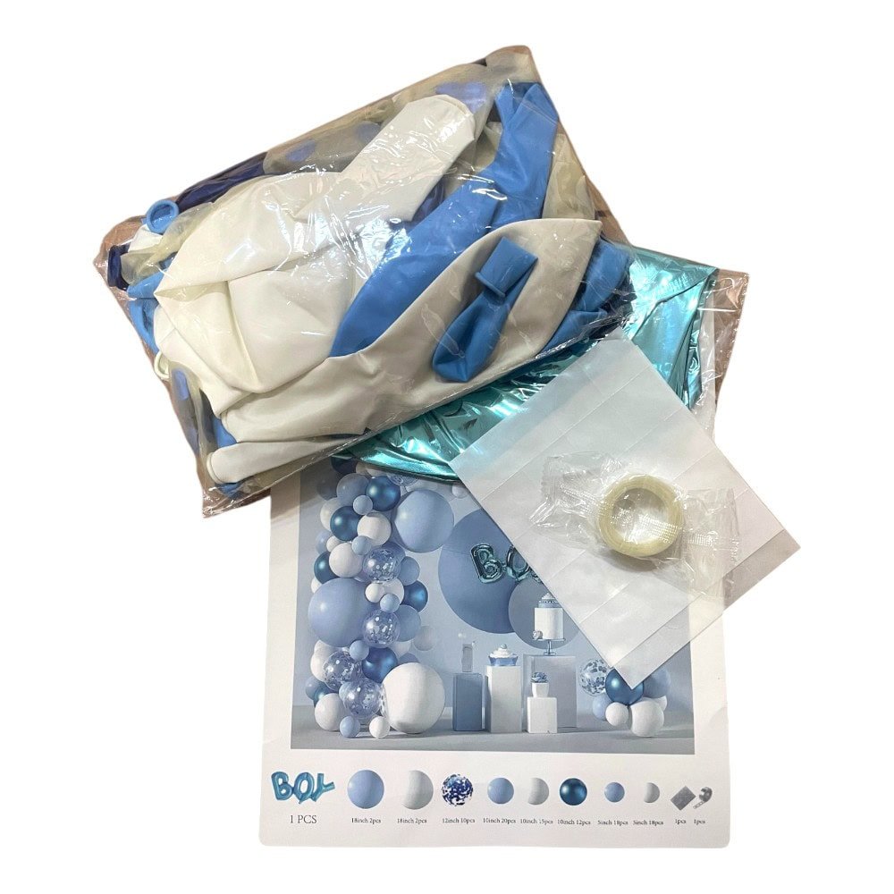 Set 100 baloane stil arcadă cu text Boy - model 4 bleu. Acest set elegant și versatil de 100 de baloane este perfect pentru a crea o atmosferă festivă și memorabilă la orice eveniment. Cu o combinație rafinată de baloane bleu și alb, textul "Boy" în relief, acest kit este ideal pentru a adăuga o notă de sofisticare și romantism decorului tău.