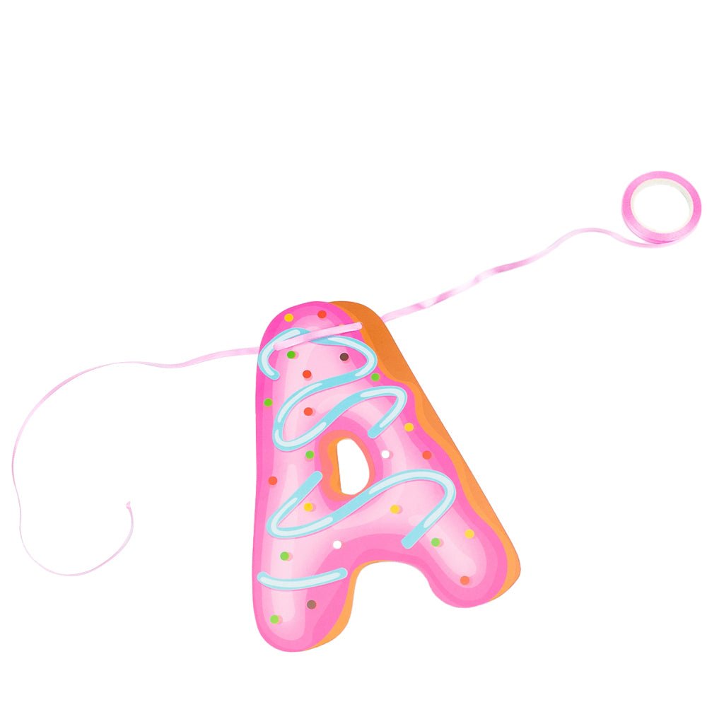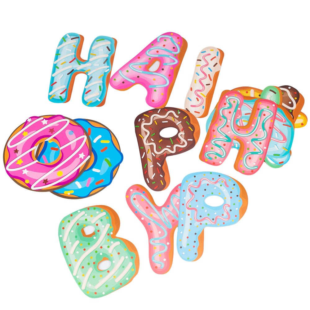 • Design Unic cu Litere-Gogoașă: Fiecare literă a mesajului "Happy Birthday" imită o gogoașă glazurată, oferind un aspect vizual extrem de atractiv și original, perfect pentru o petrecere tematică "Donut" sau "Sweet Shop".