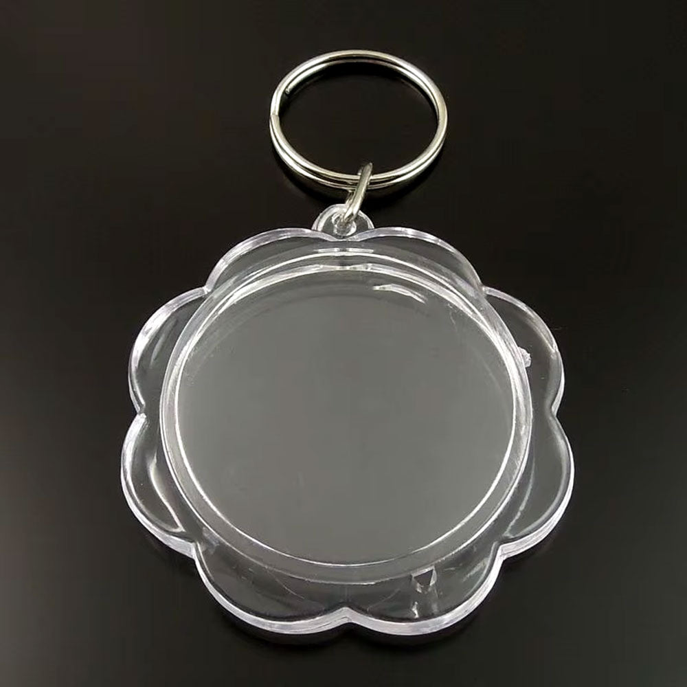 Breloc din plastic transparent cu insertie foto patrat 4x4 cm.