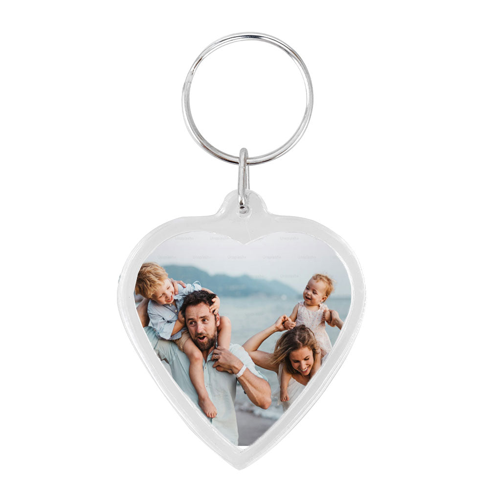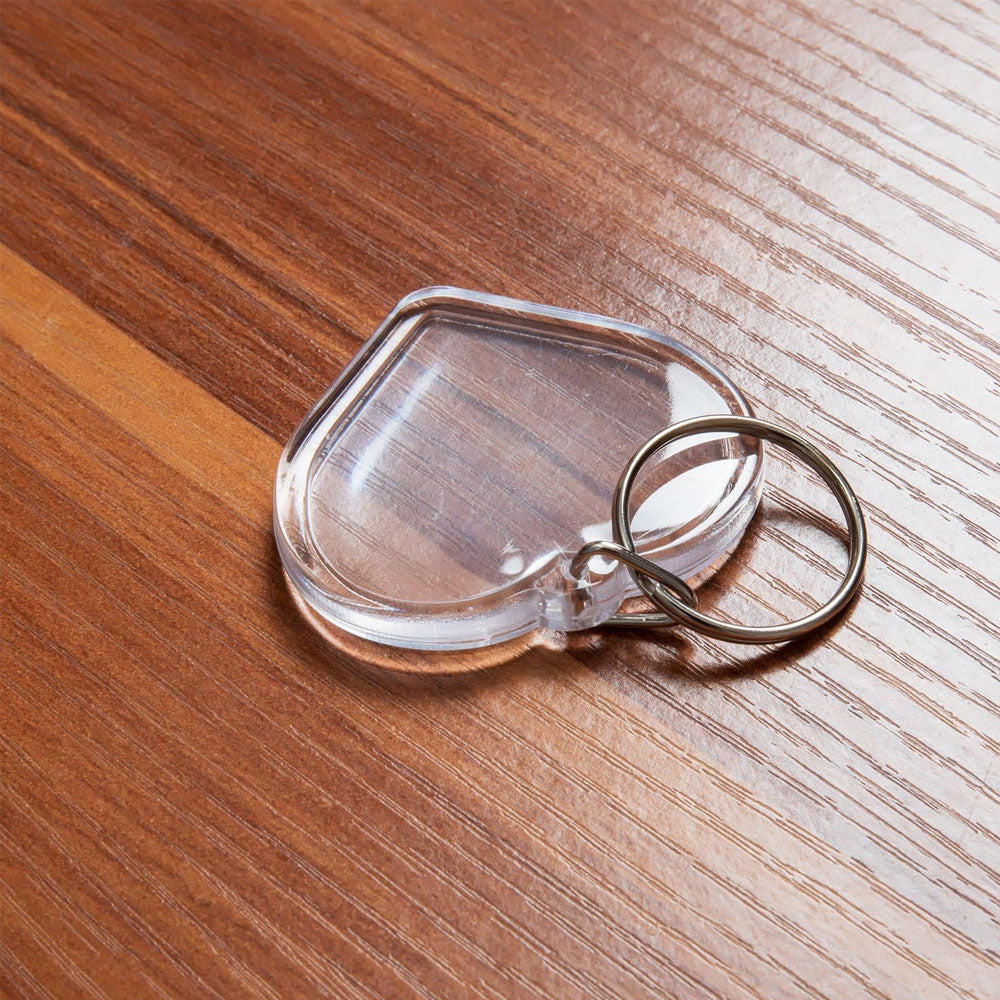 Breloc din plastic transparent cu insertie foto in forma de inimioara