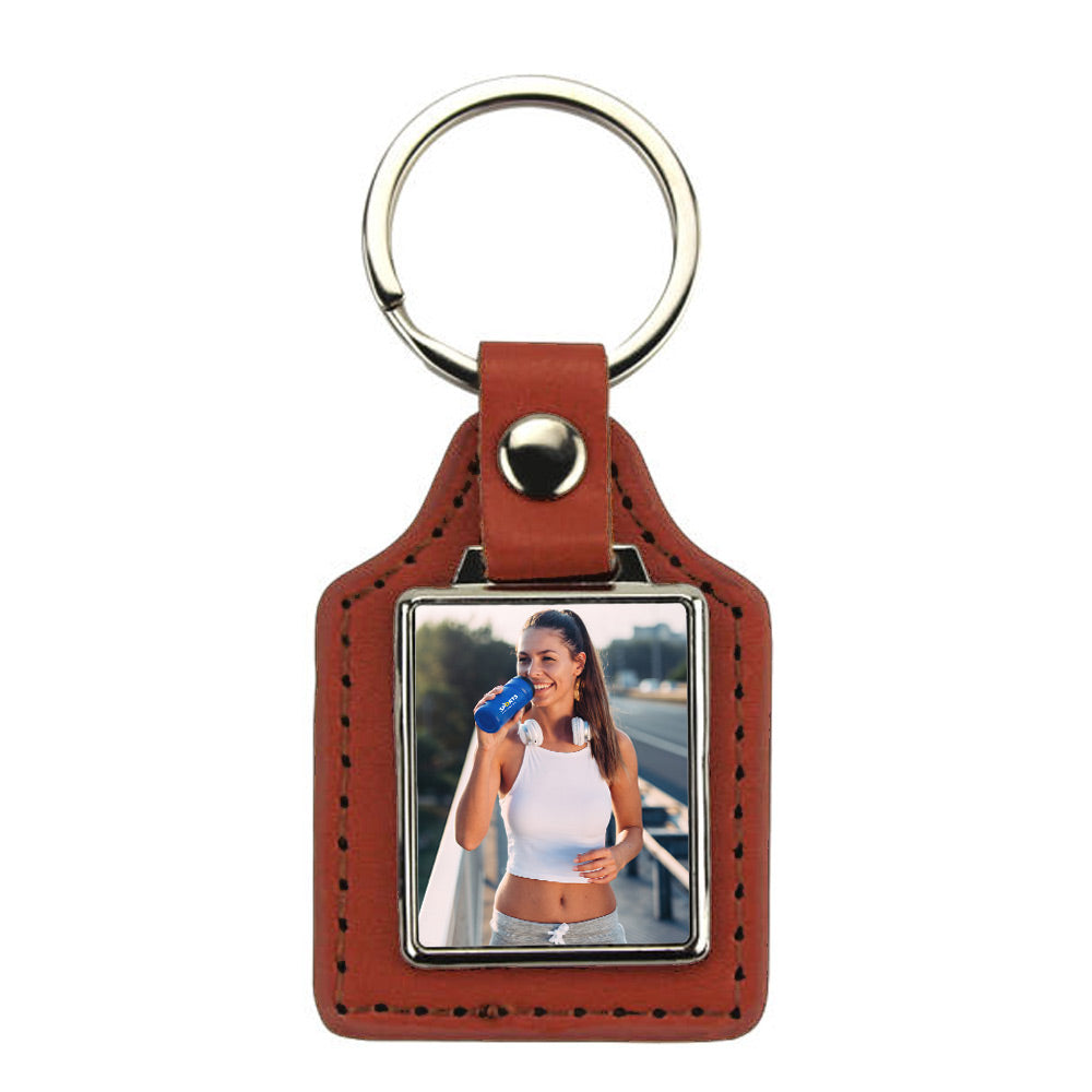 Breloc piele cu pandantiv metalic sublimabil - dreptunghi