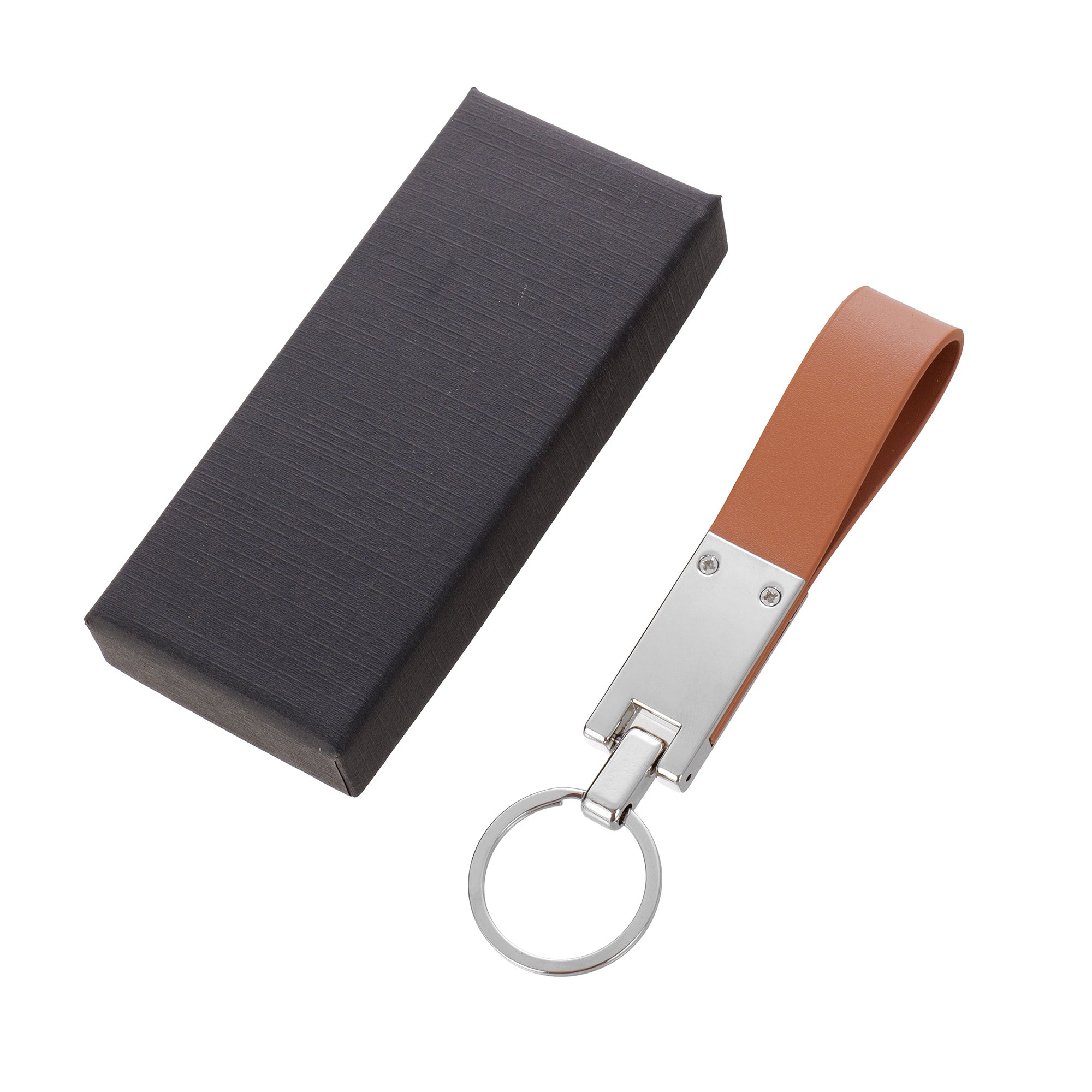 Breloc realizat din piele ecologică și metal, cu design simplu și elegant. Este prevăzut cu inel metalic rezistent pentru prinderea cheilor și vine ambalat individual în cutie neagra. Potrivit pentru utilizare zilnică sau pentru personalizare în campanii promoționale.