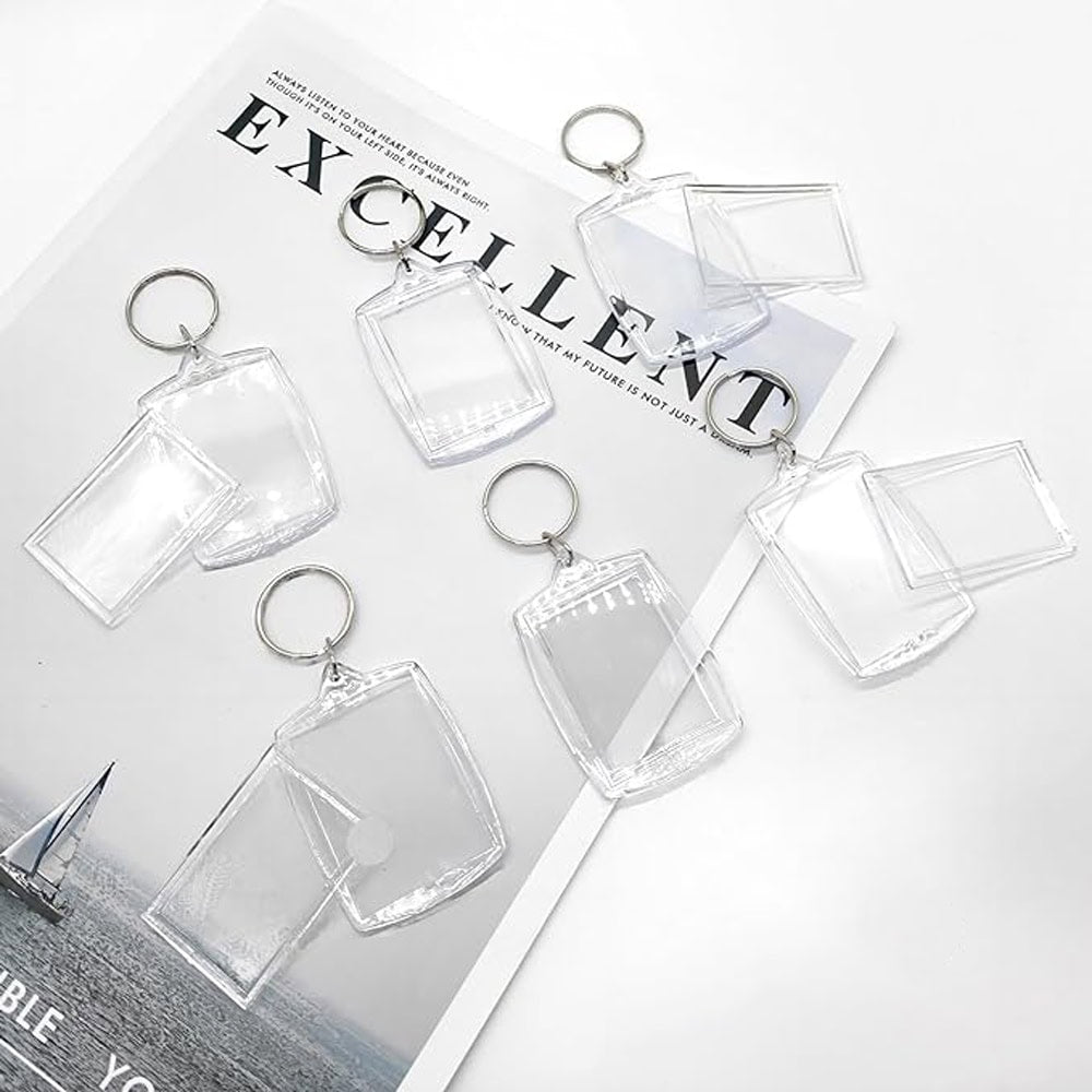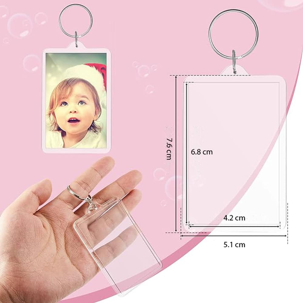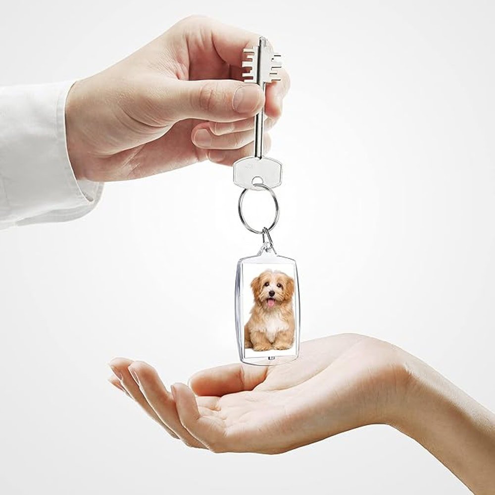 Breloc dreptunghiular transparent inserție foto vă permite să inserați o fotografie preferată sau o imagine amuzantă adăugând o notă personală vieții de zi cu zi.
