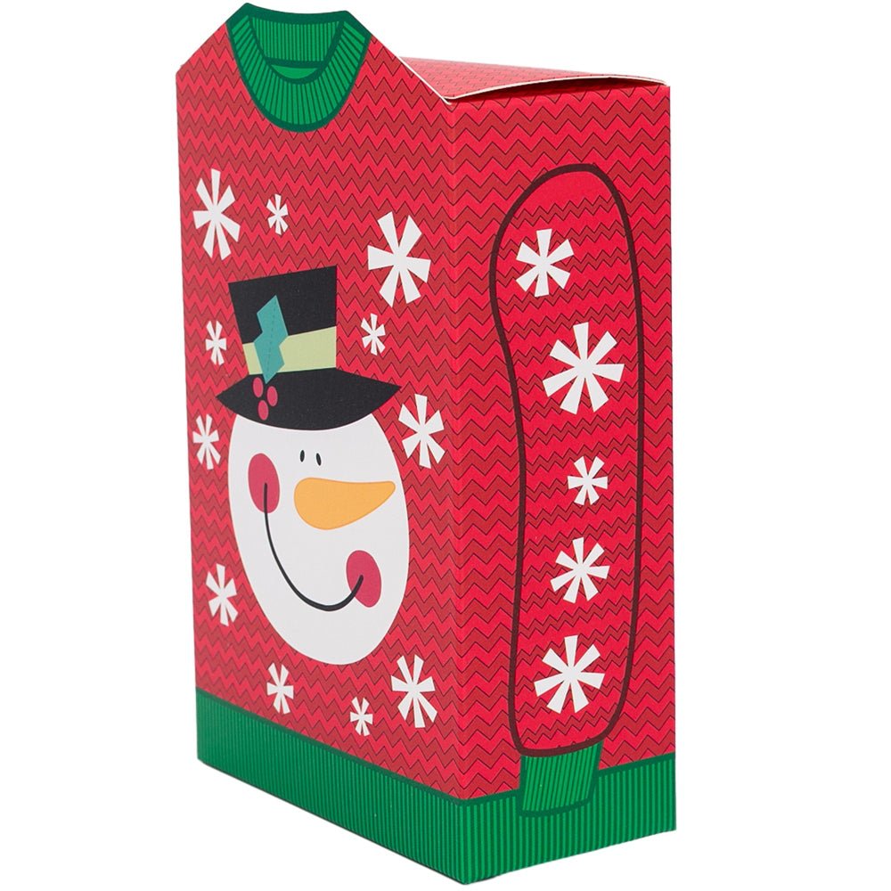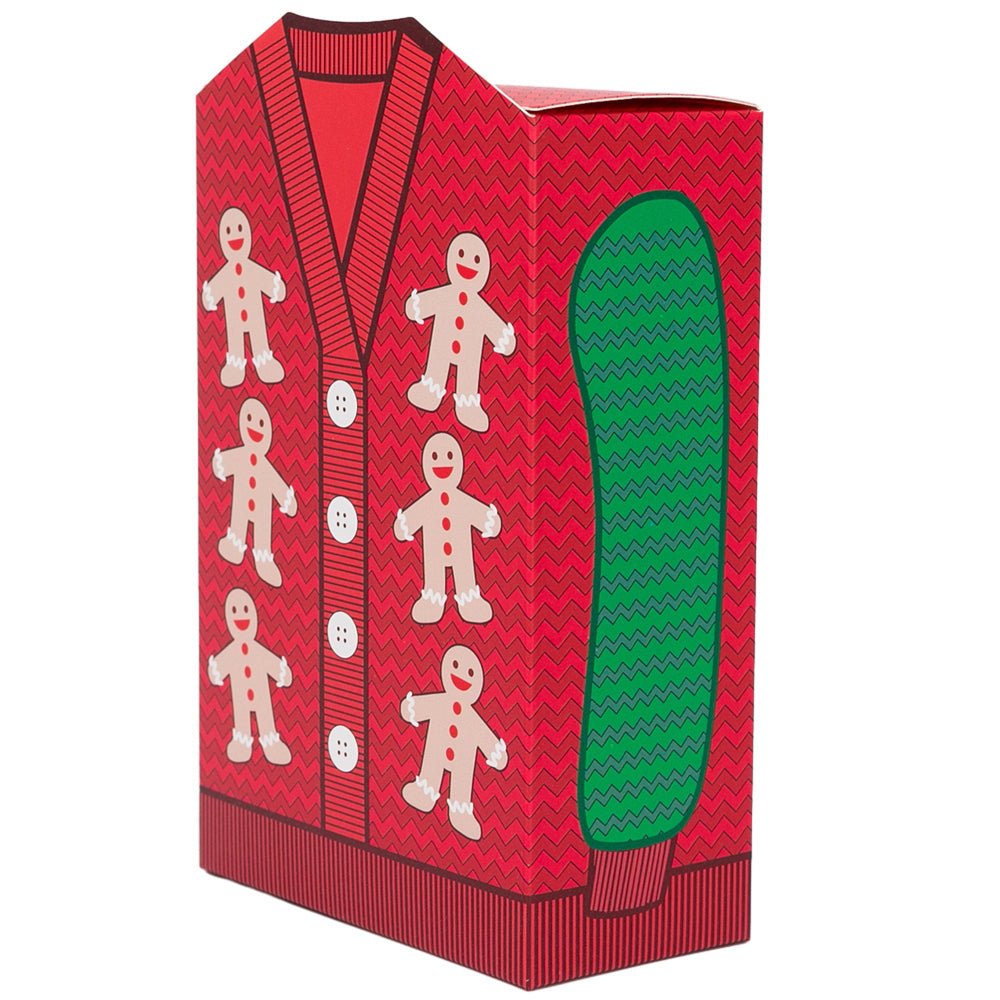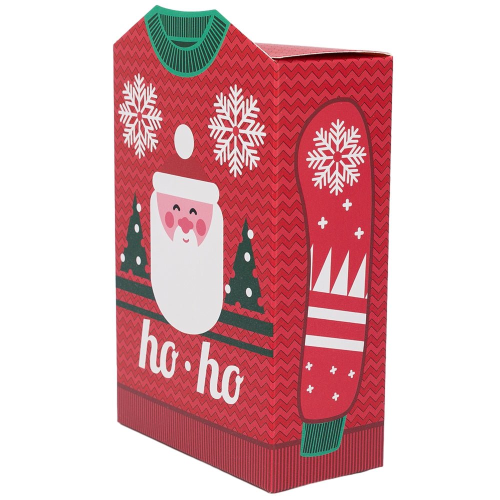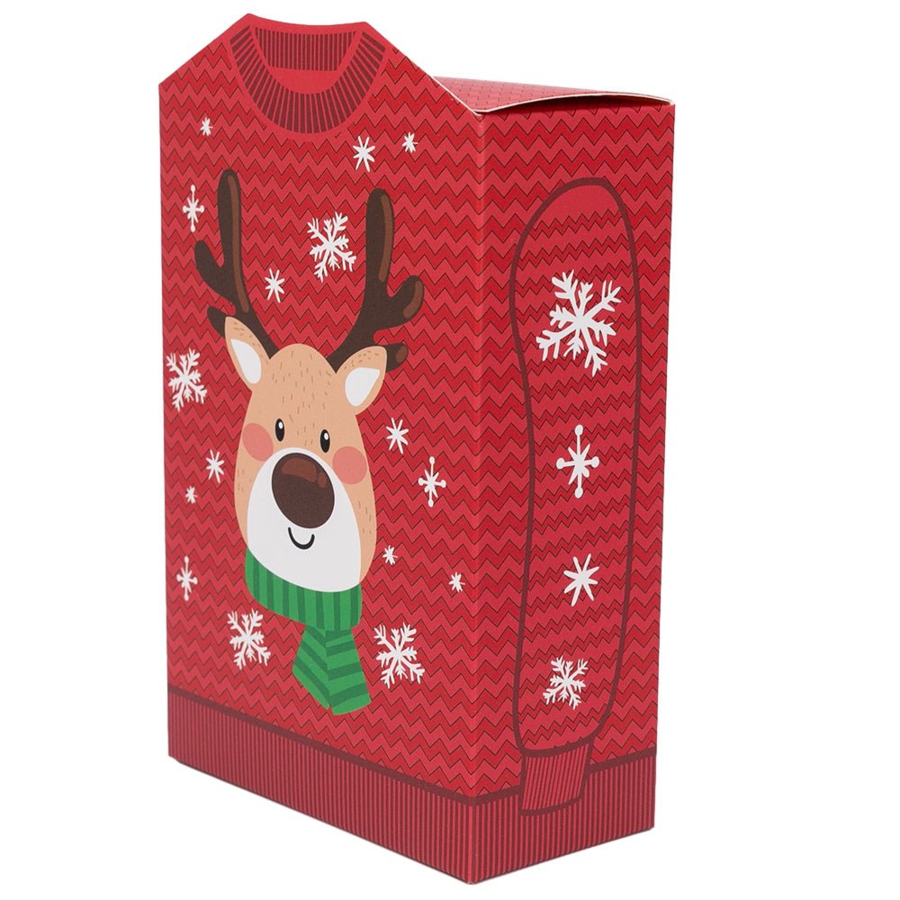 - Design Unic în Formă de Pulover: Fiecare cutie imită perfect un pulover festiv împăturit, cu guler și o mânecă vizibilă pe lateral, oferind un ambalaj 3D cu adevărat original și memorabil.
