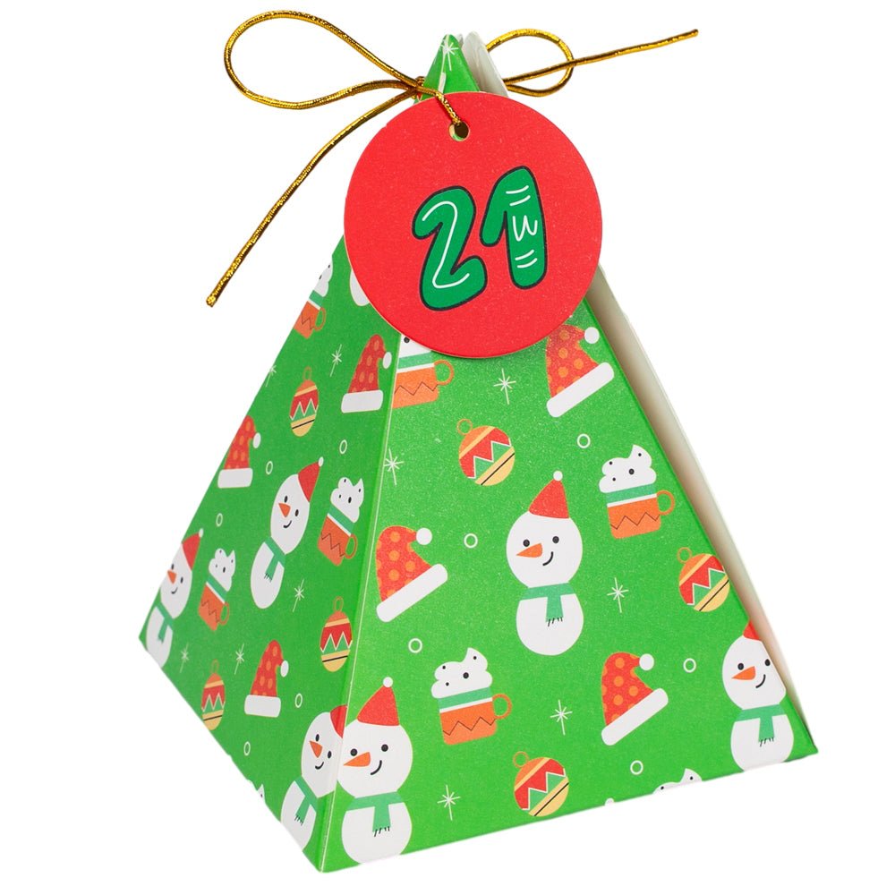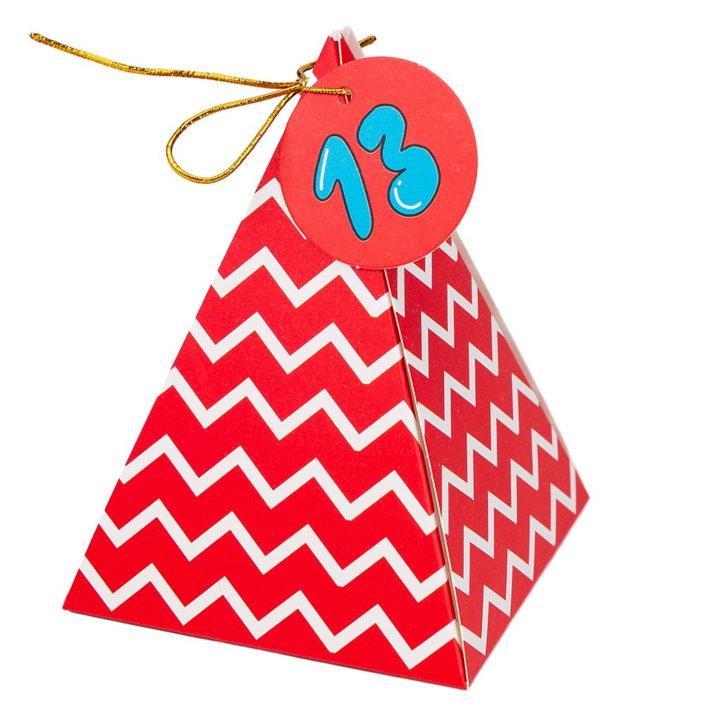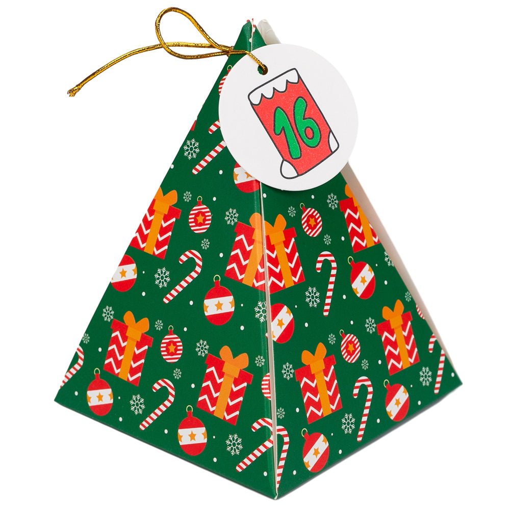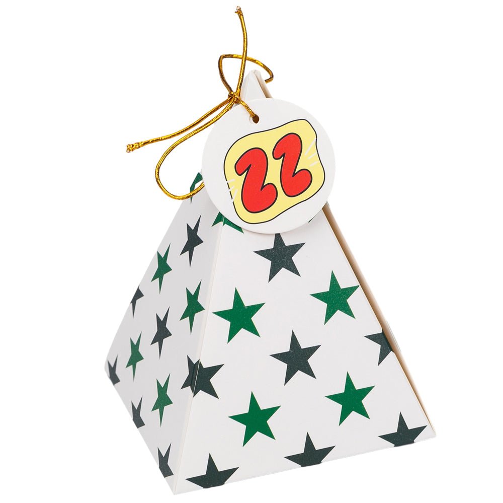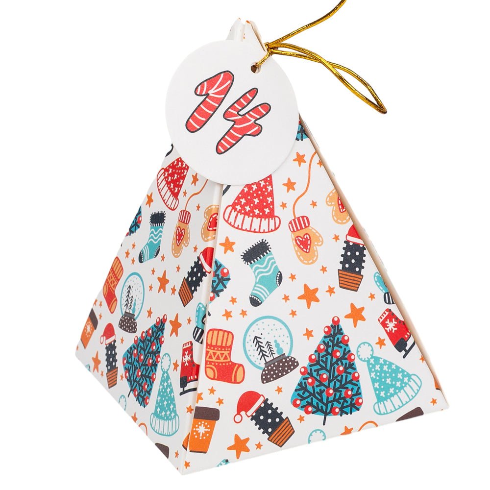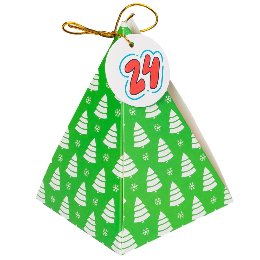 Construiți suspansul și bucuria în fiecare zi a lunii decembrie cu un calendar Advent cu totul special! Acest set excepțional conține 24 de cutii piramidale, fiecare cu un design grafic unic și vibrant, gata să fie umplute cu mici surprize.
