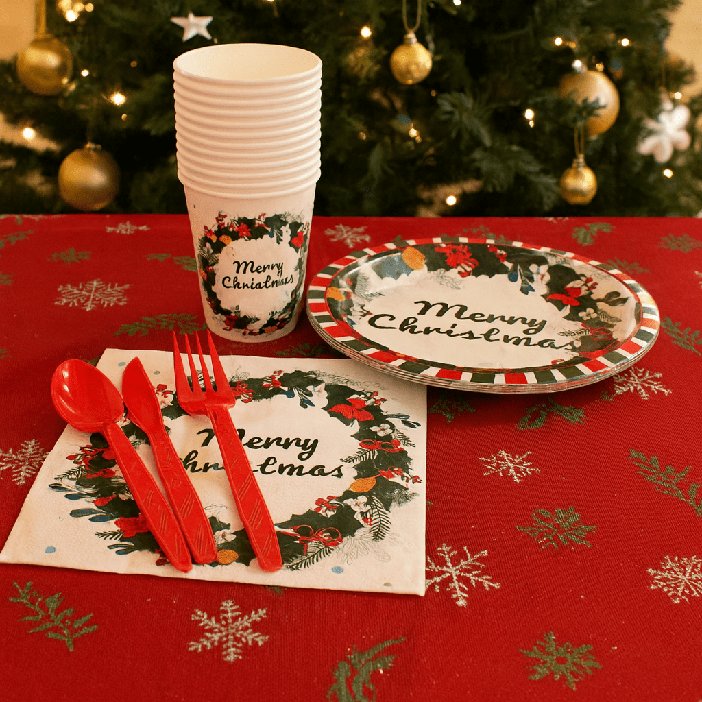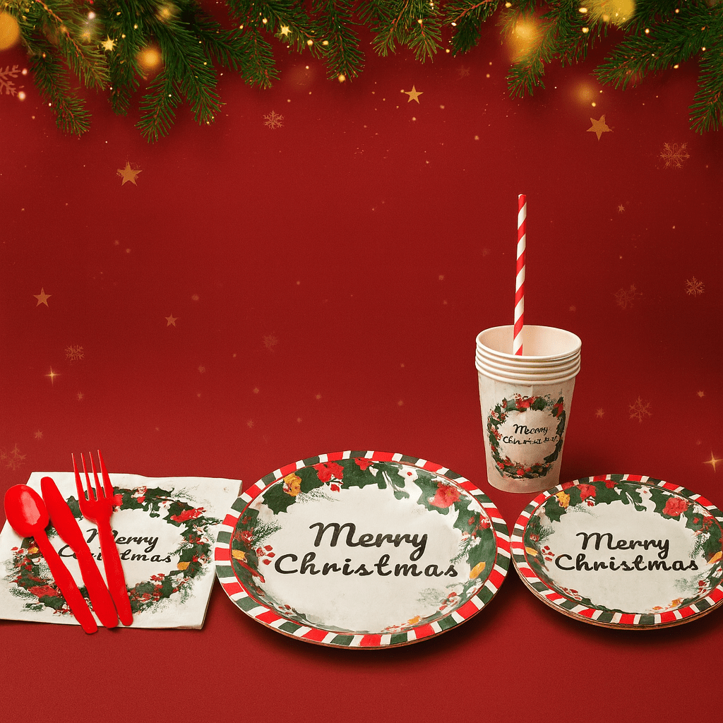 Kit de Petrecere "Merry Christmas" - Farfurii, Pahare, Tacâmuri și Șervețele
