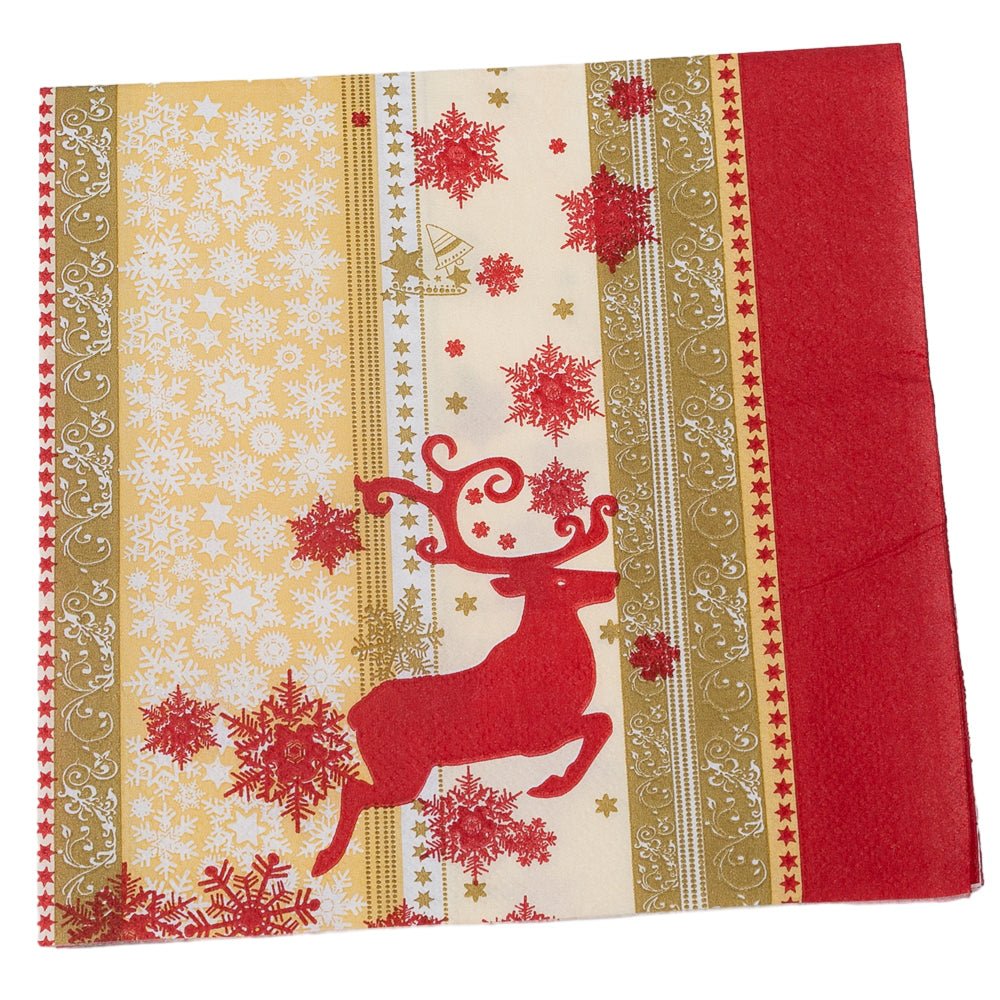 Șervețele de Crăciun cu ren roșu și benzi aurii (set 20 buc)