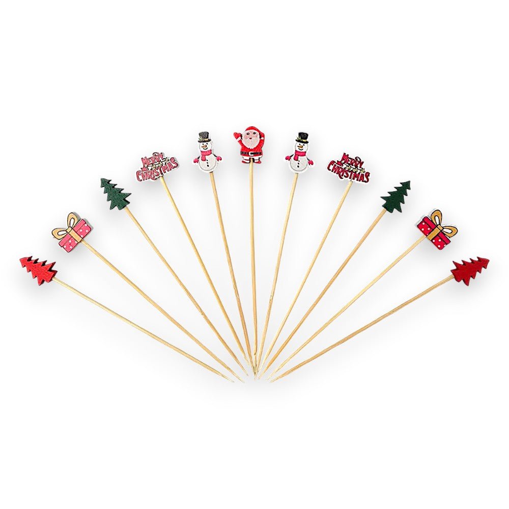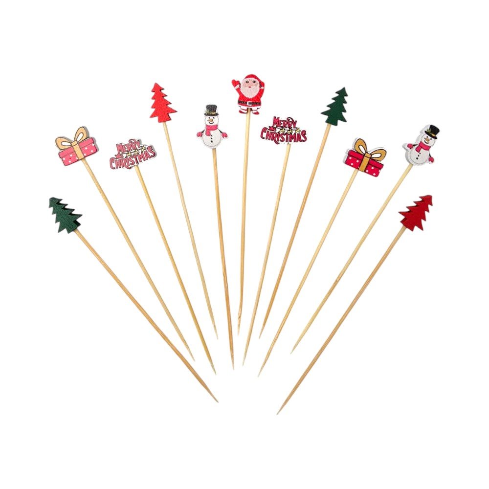 Set 100 bețișoare Crăciun din lemn cu om de zăpadă și brad
