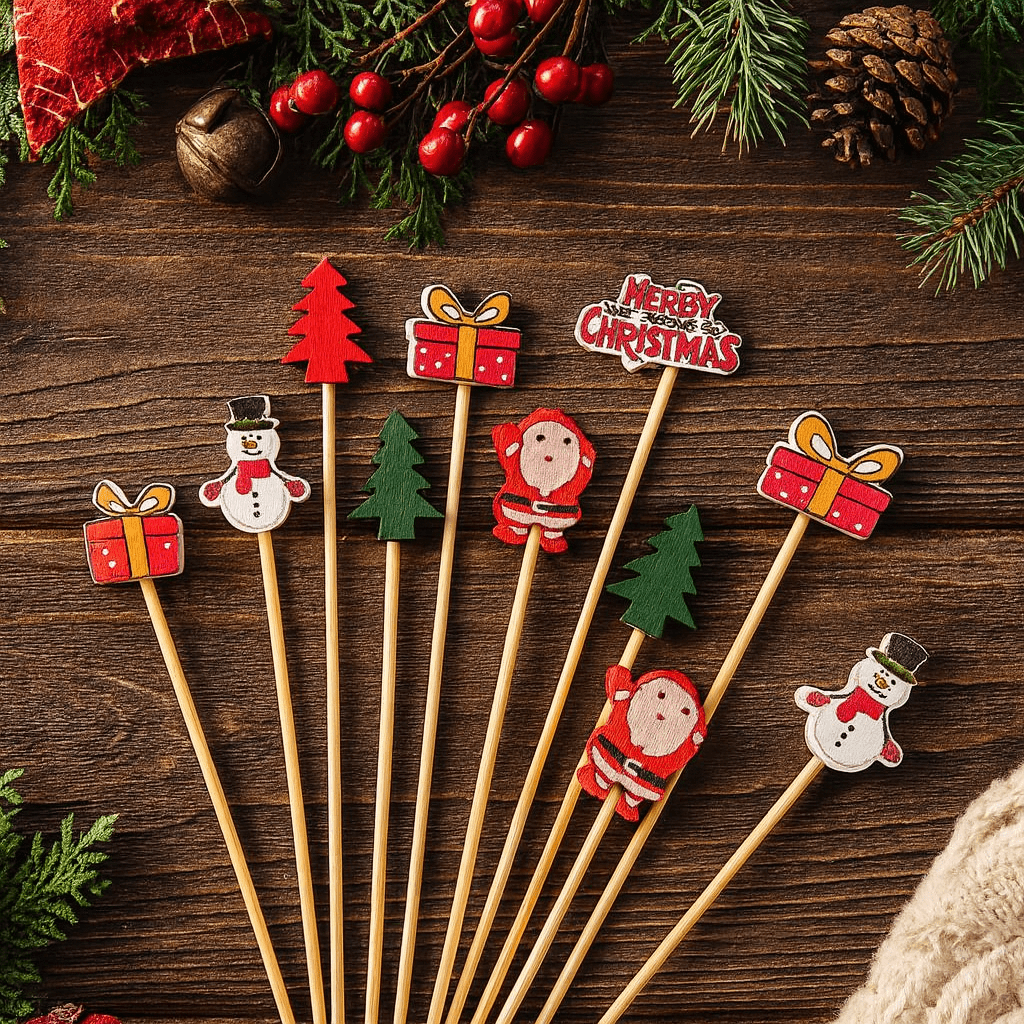 Adaugă un plus de culoare și veselie oricărei mese festive. Decorate cu brăduți, cadouri și figurine vesele, aceste accesorii sunt perfecte pentru deserturi, aperitive sau aranjamente tematice.