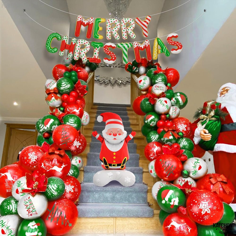 Set decor baloane Crăciun 115 piese cu arc, folie Merry Christmas și Moș Crăciun