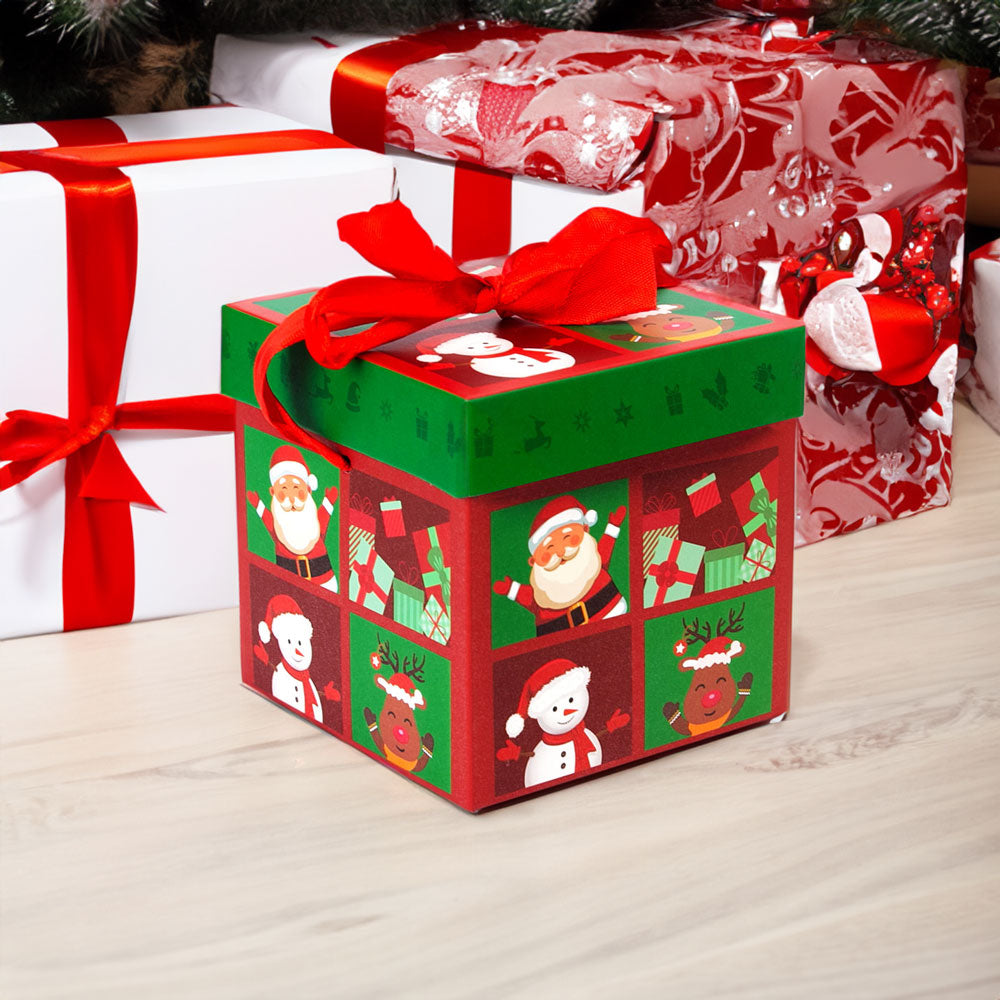Print superior: Cutiile noastre de Craciun sunt fabricate din carton plastifiat de inalta calitate, ceea ce le confera durabilitate. Designul special este creat pentru a sublinia atmosfera festiva a sarbatorilor.