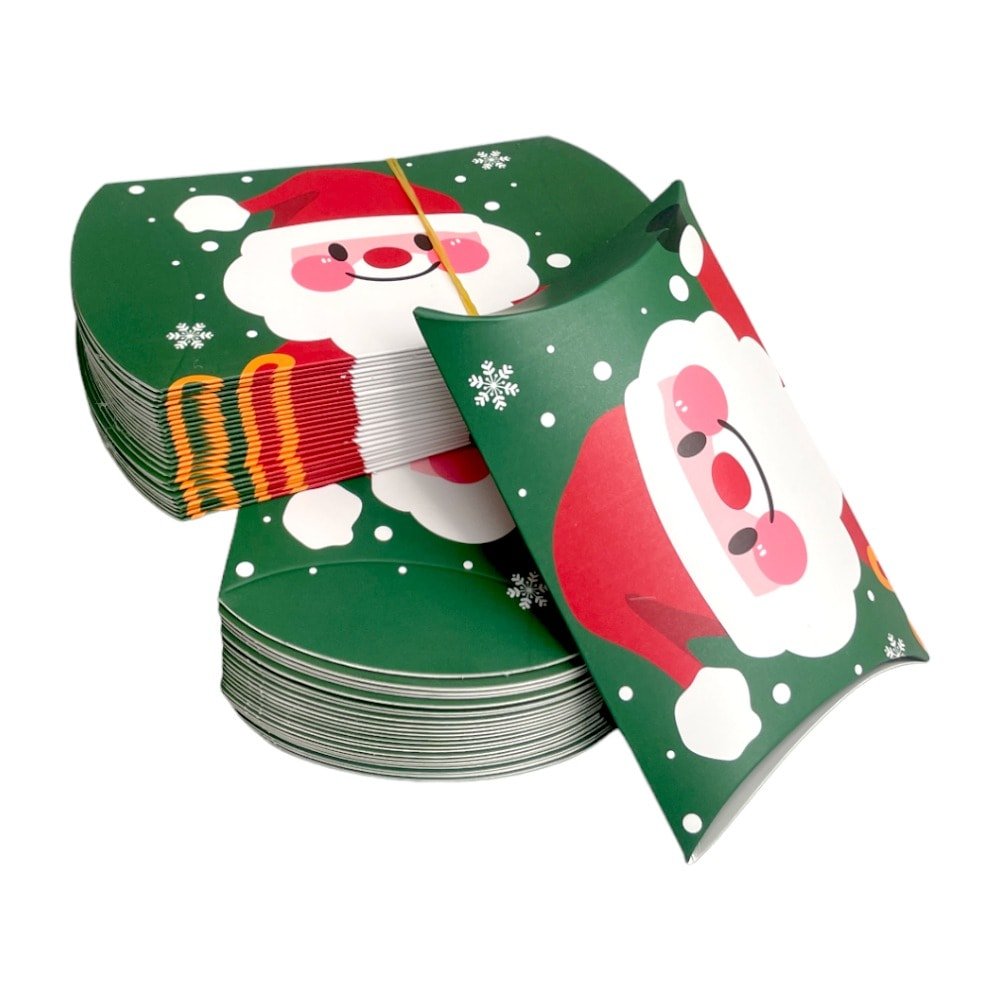 Cutie Crăciun în formă de pernă - model 1 Moș Crăciun (set 50 buc) 12x7.2x2.5cm este o alegere perfectă pentru ambalarea cadourilor de sărbători. Cu setul de 50 de bucăți, veți adăuga o notă specială cadourilor dvs. de Crăciun. Dimensiunea sa compactă este ideală pentru articole mici și bijuterii.
