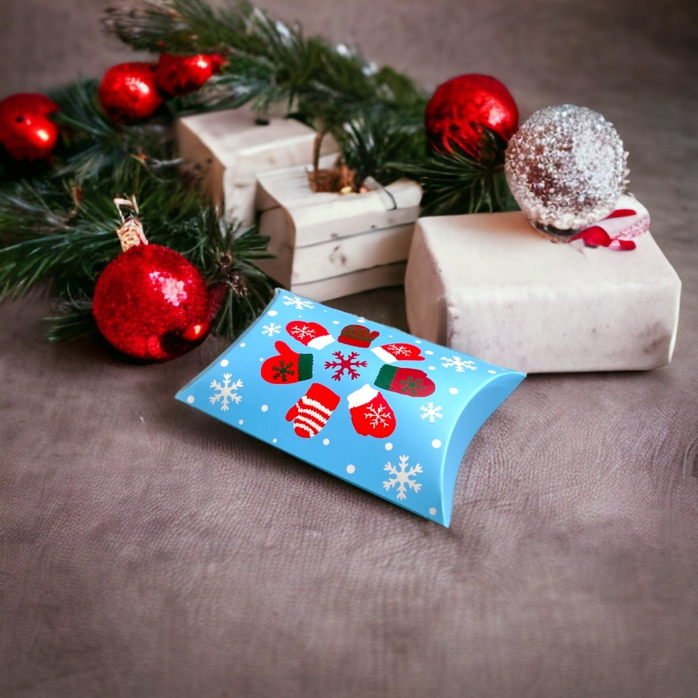 Cutie Crăciun în formă de pernă - model 3 fulgi de zăpadă (set 50 buc) 12x7.2x2.5cm este o alegere perfectă pentru ambalarea cadourilor de sărbători. Cu s