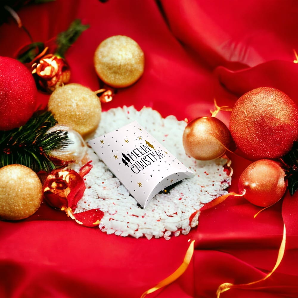 Cutie Crăciun în formă de pernă - model 7 alb (set 50 buc) 14x10x2.6cm