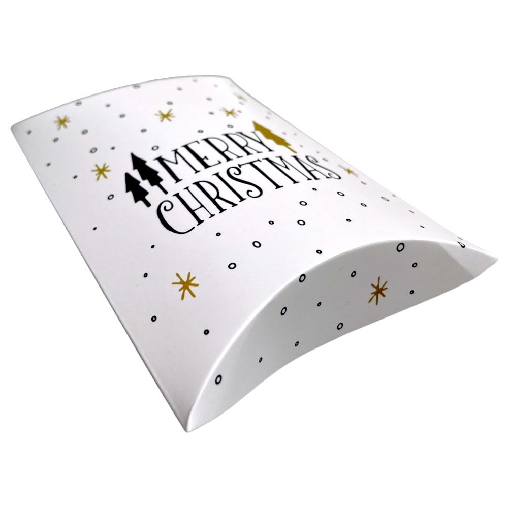 Cutie Crăciun în formă de pernă - model 7 alb este un ambalaj perfect pentru a oferi darurile tale de sărbători într-un mod elegant și festiv.