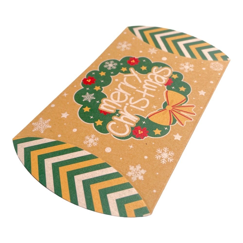 Cutie Crăciun kraft în formă de pernă - model 4 coroniță (set 50 buc) 12x7.2x2.5cm