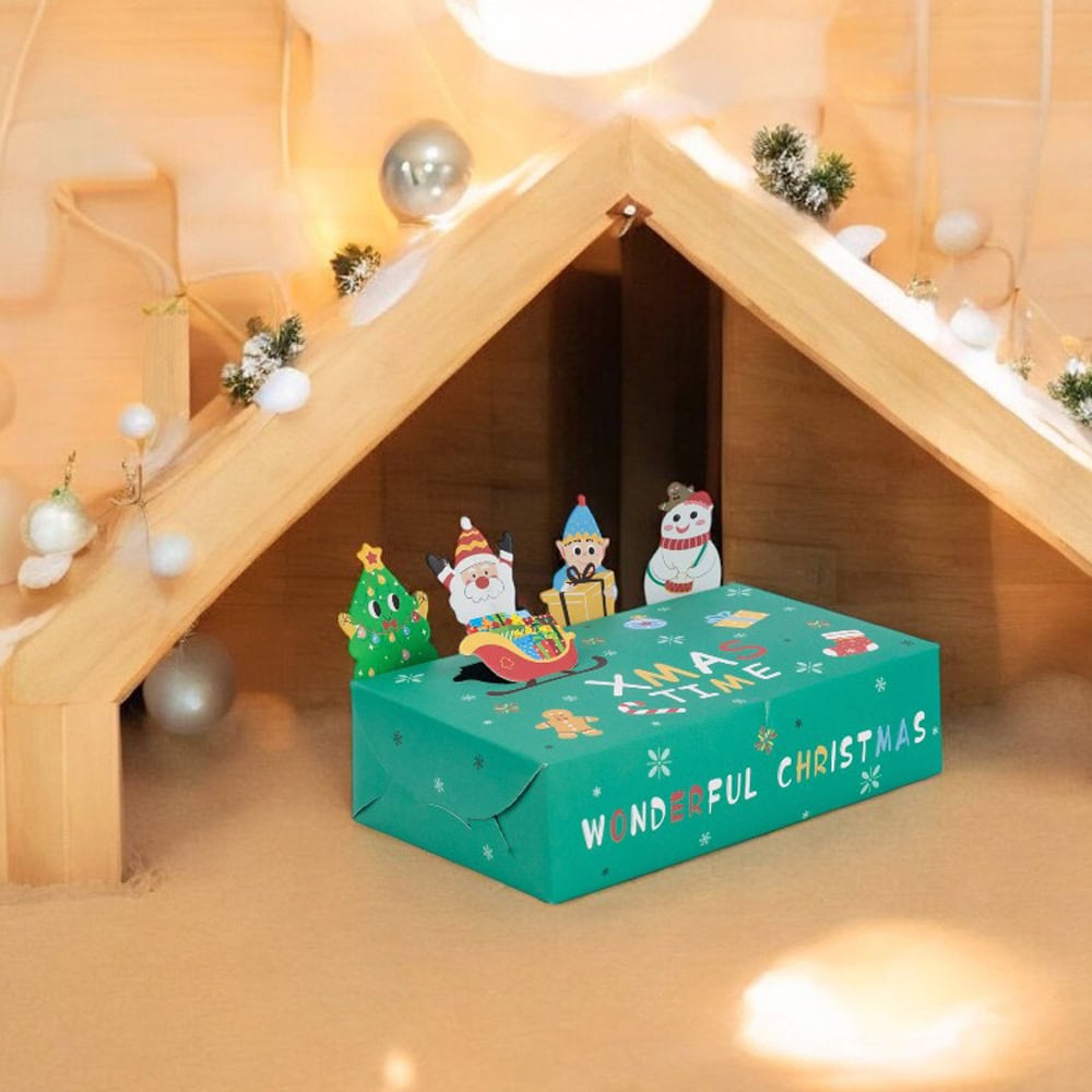 Cutie de Crăciun cu figurine 3D - verde are un design festiv și figurine 3D jucăușe, cutia devine un decor minunat pentru sezonul sărbătorilor