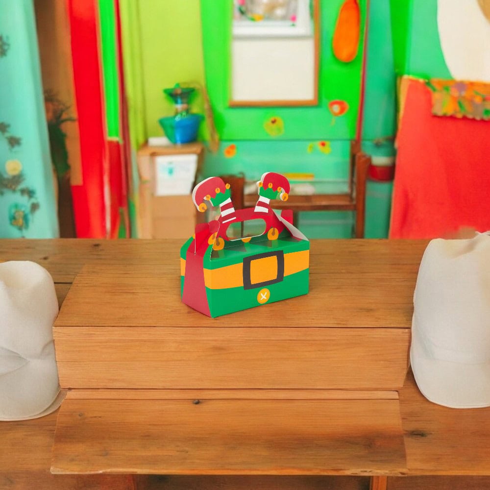 • Design festiv: Cutia prezintă un design vesel și colorat, în formă de elf, care cu siguranță va încânta atât copii, cât și adulți