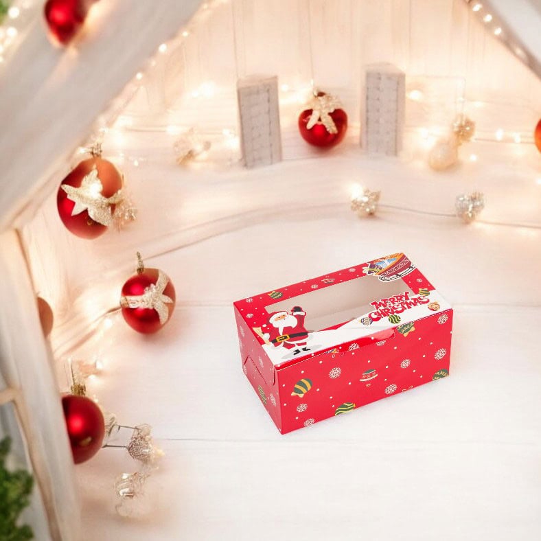 Cutie dreptunghiulară de Crăciun cu fereastră și 2 compartimente - roșu această cutie elegantă și festivă este perfectă pentru a împacheta și a oferi cadouri în timpul sezonului de sărbători. Cu designul său atractiv, cu tematică de Crăciun, și cu fereastra transparentă care oferă o previzualizare a conținutului, această cutie va cuceri inimile celor dragi