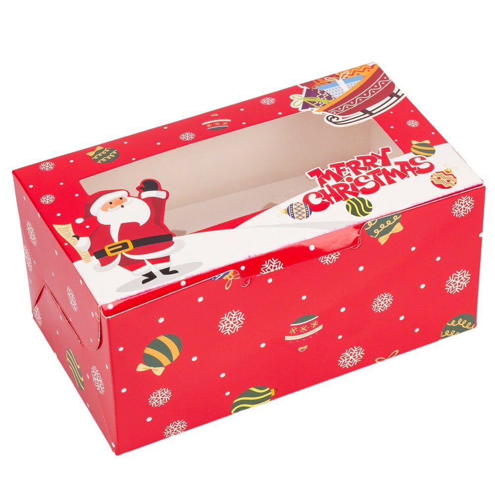 Cutie dreptunghiulară de Crăciun cu fereastră și 2 compartimente - roșu (set 25 buc)