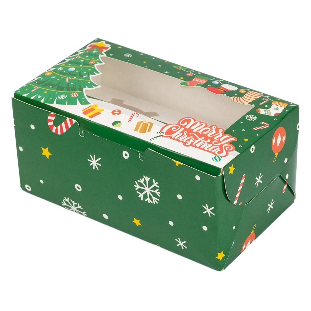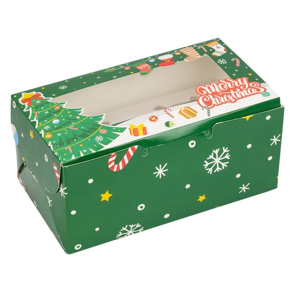 Cutie dreptunghiulară de Crăciun cu fereastră și 2 compartimente - verde (set 25 buc)