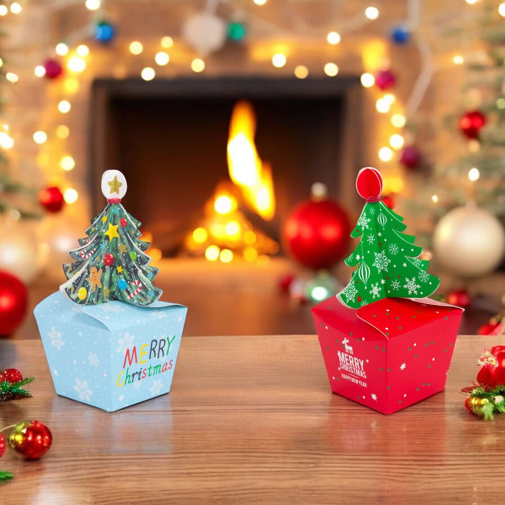 • Cutie mică cu capac decorativ 3D în formă de brad de Crăciun