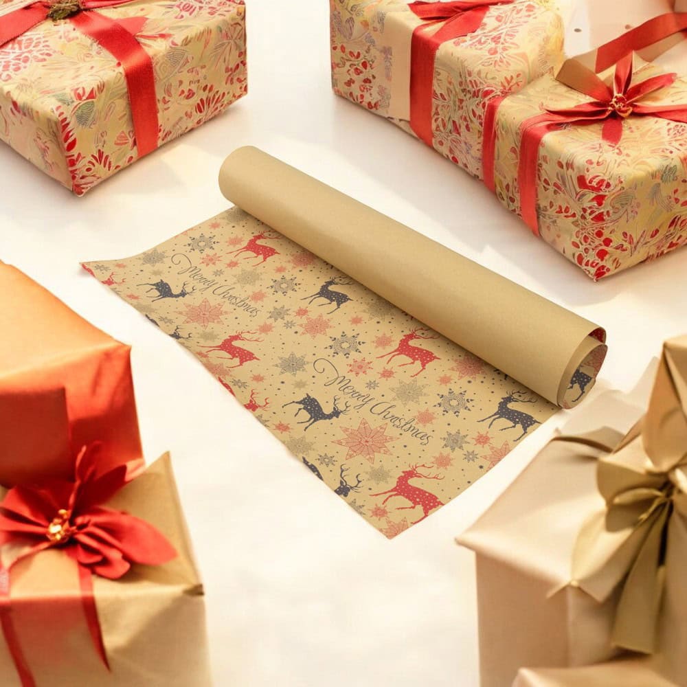 Foi de ambalat de Crăciun - model 9 kraft adaugă eleganța și spiritul sărbătorilor de Crăciun. Designuri festive și variate, realizate din materiale de înaltă calitate, transformă orice cadou într-o adevărată surpriză.