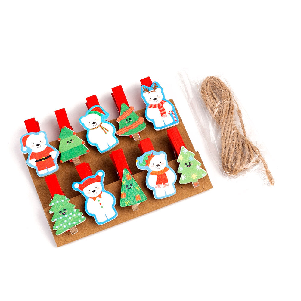 Mini carlige decorative CRACIUN2 - set 10 buc