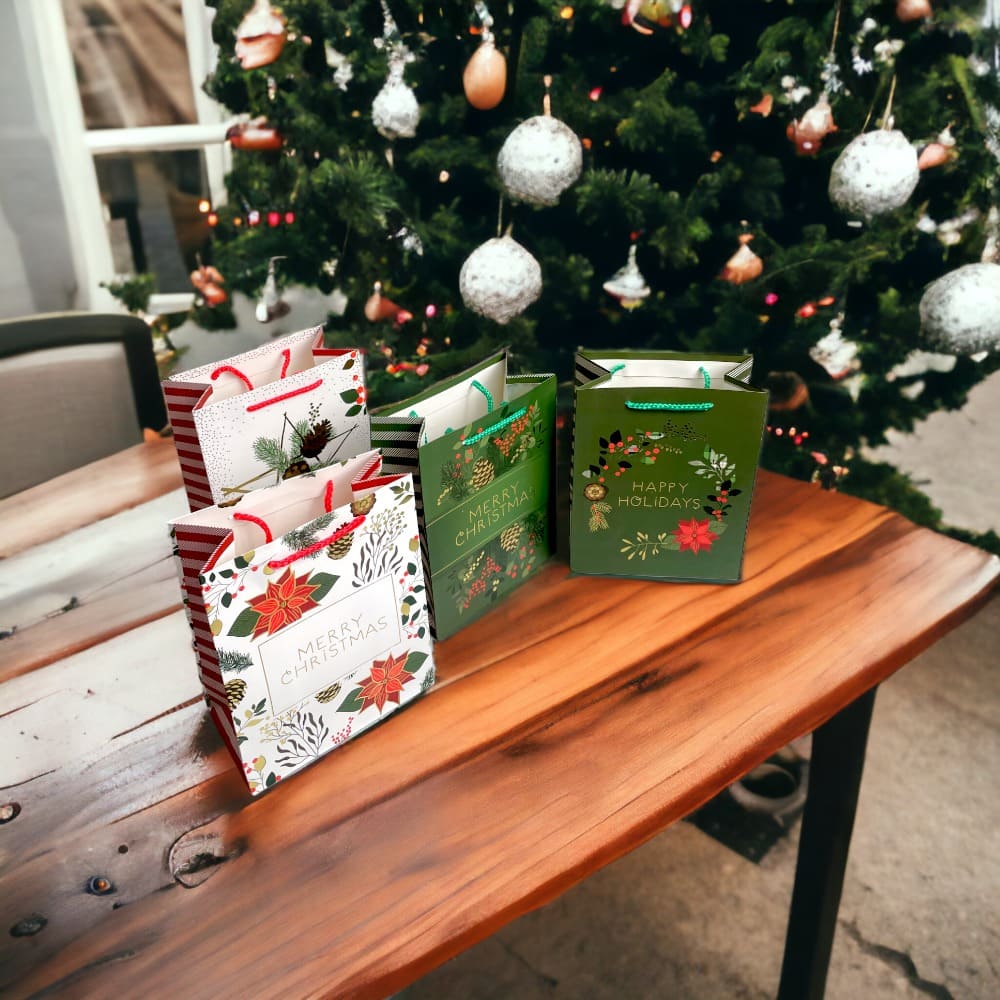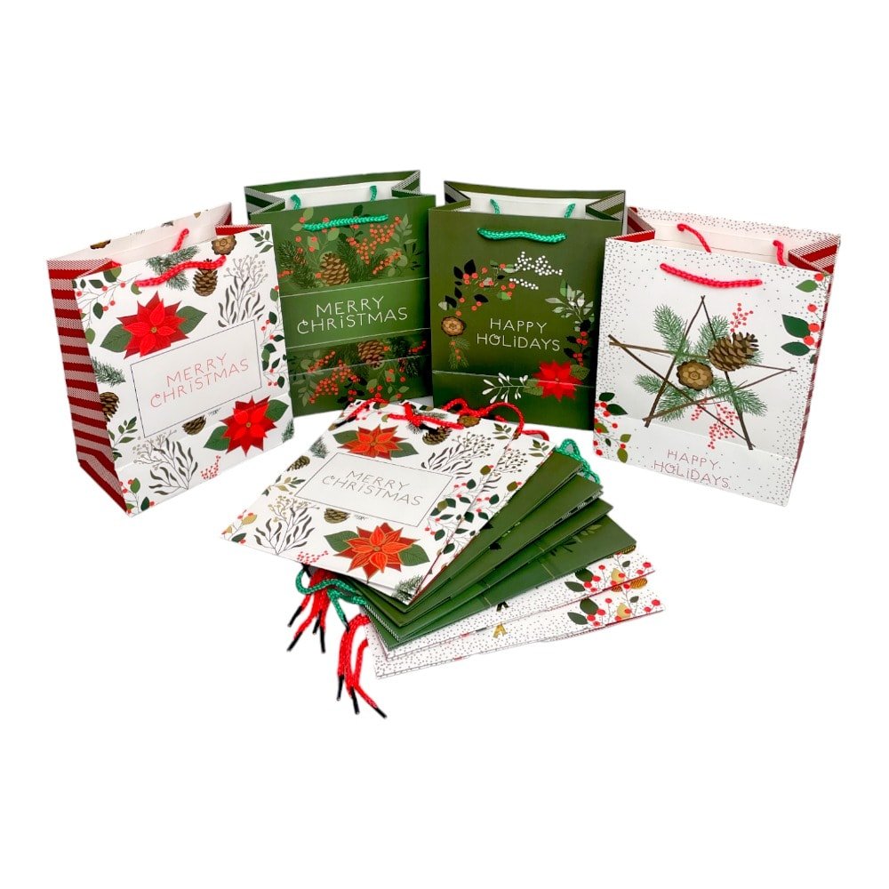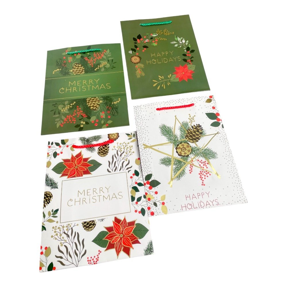 Pungi cadou Crăciun Fericit mix 4 modele (set 12 buc) adaugă un strop de magie sărbătorilor tale. Perfecte p