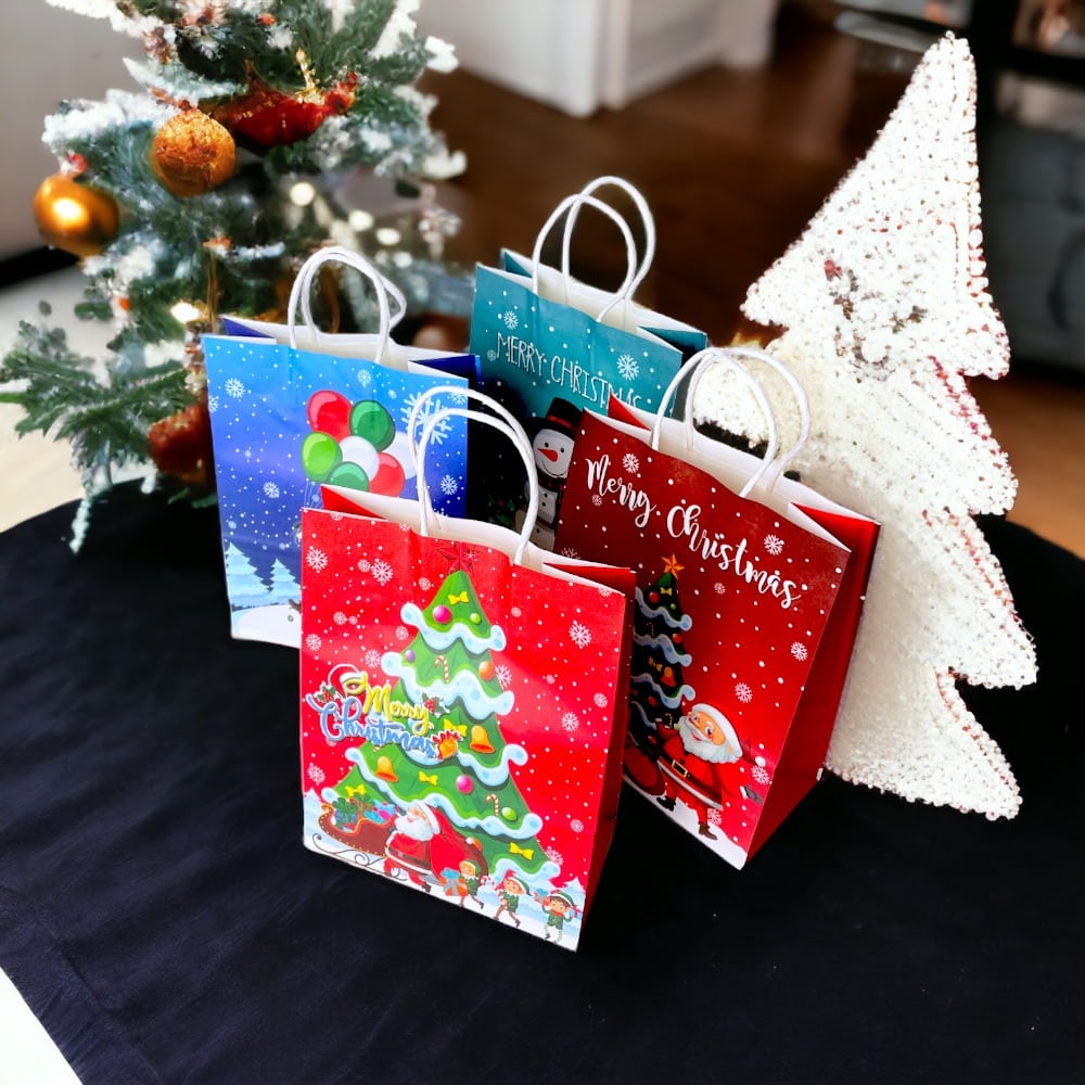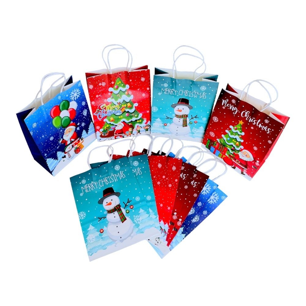 Pungi cadou Crăciun hârtie kraft mix 4 modele - model 6 A venit Moșul (set 12 buc) aduc căldura Crăciunului în ambalajele tale.