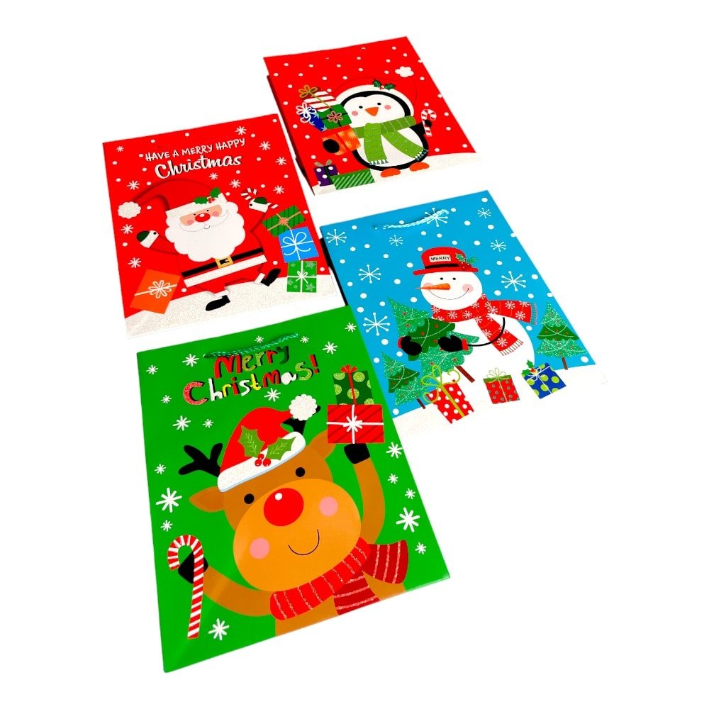 Pungi cadou Crăciun mix 4 modele - model 5 Prietenii Moșului (set 12 buc) Cele mai frumoase pungi cadou pentru un C
