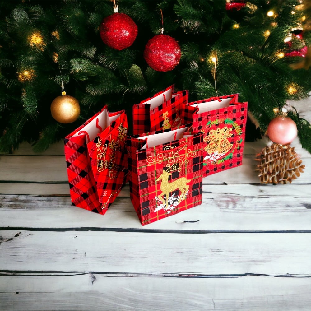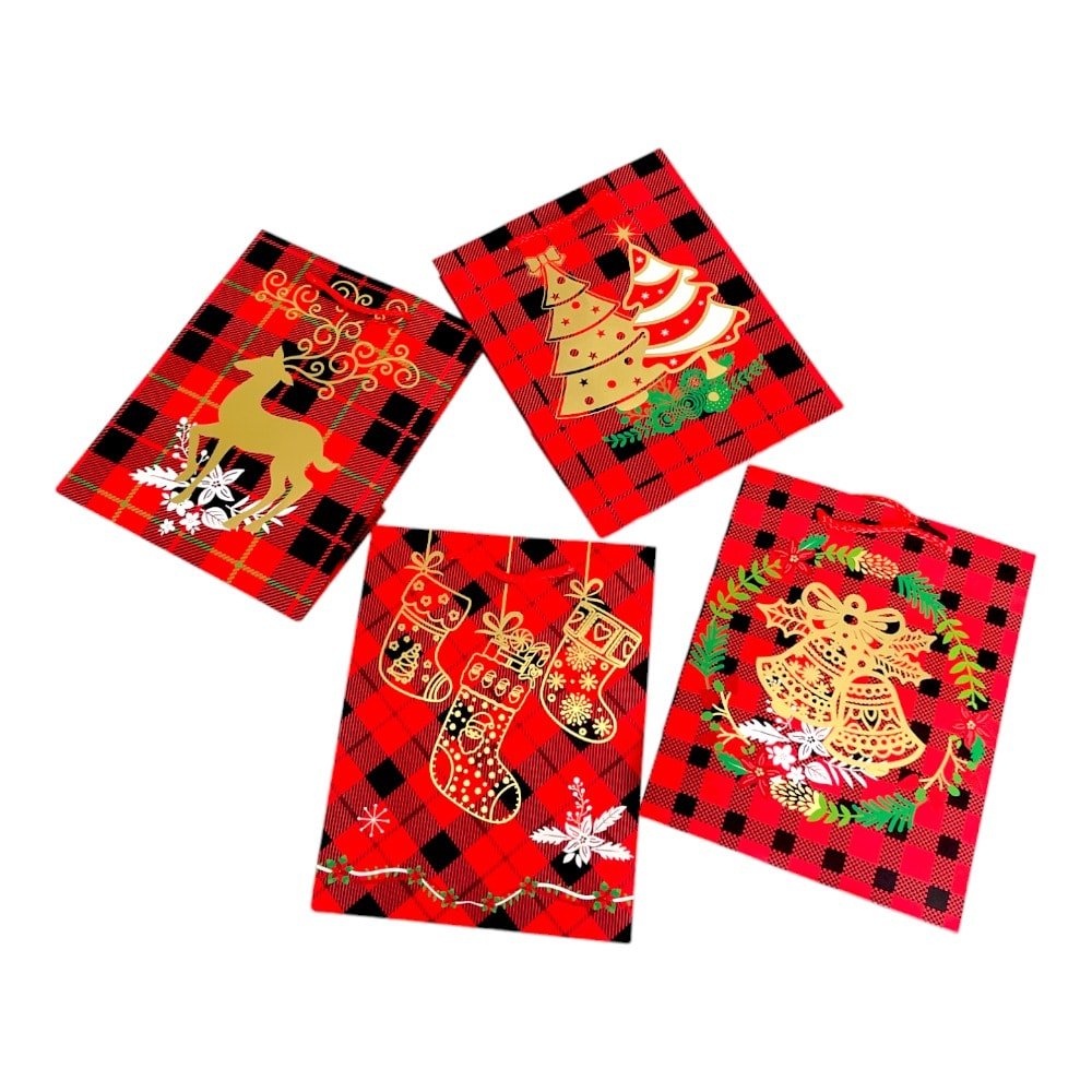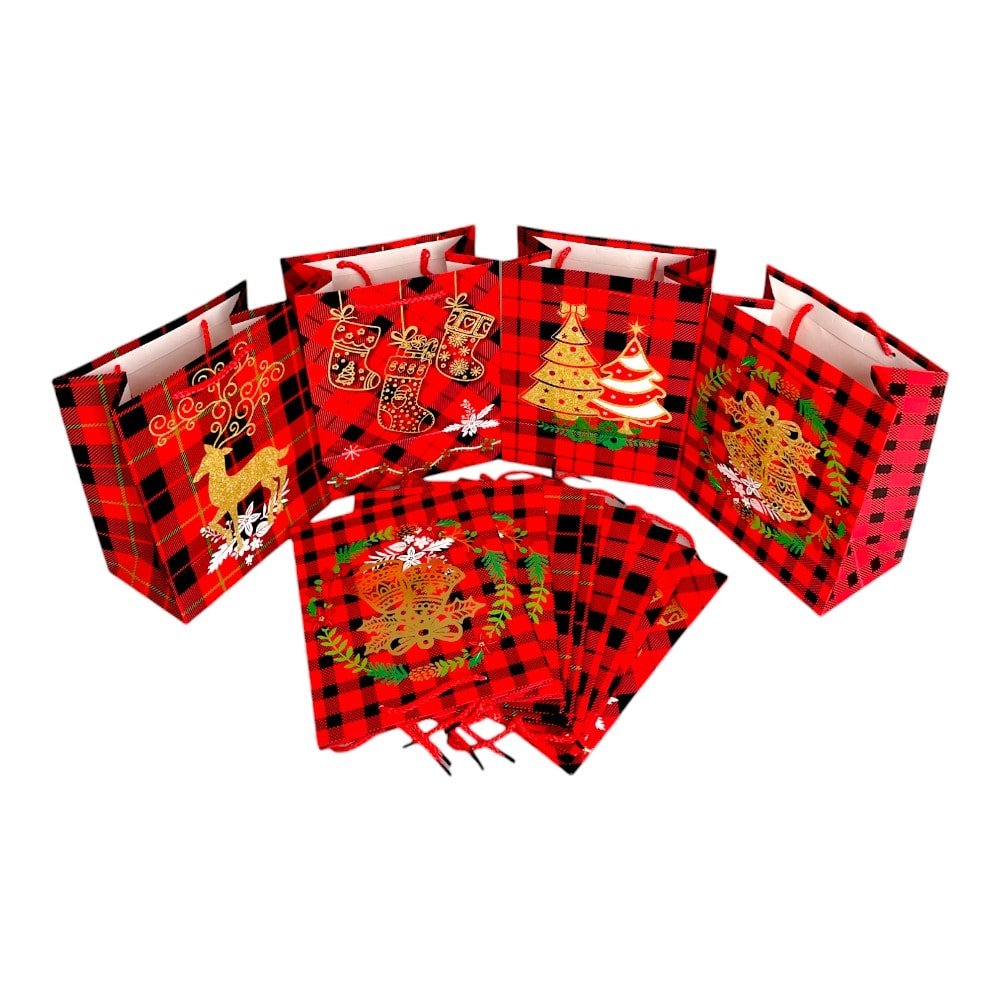 Pungi cadou Crăciun mix 4 modele - model 8 carouri (set 12 buc) cele mai frumoase pungi cadou pentru un Crăciun magic și plin de bu