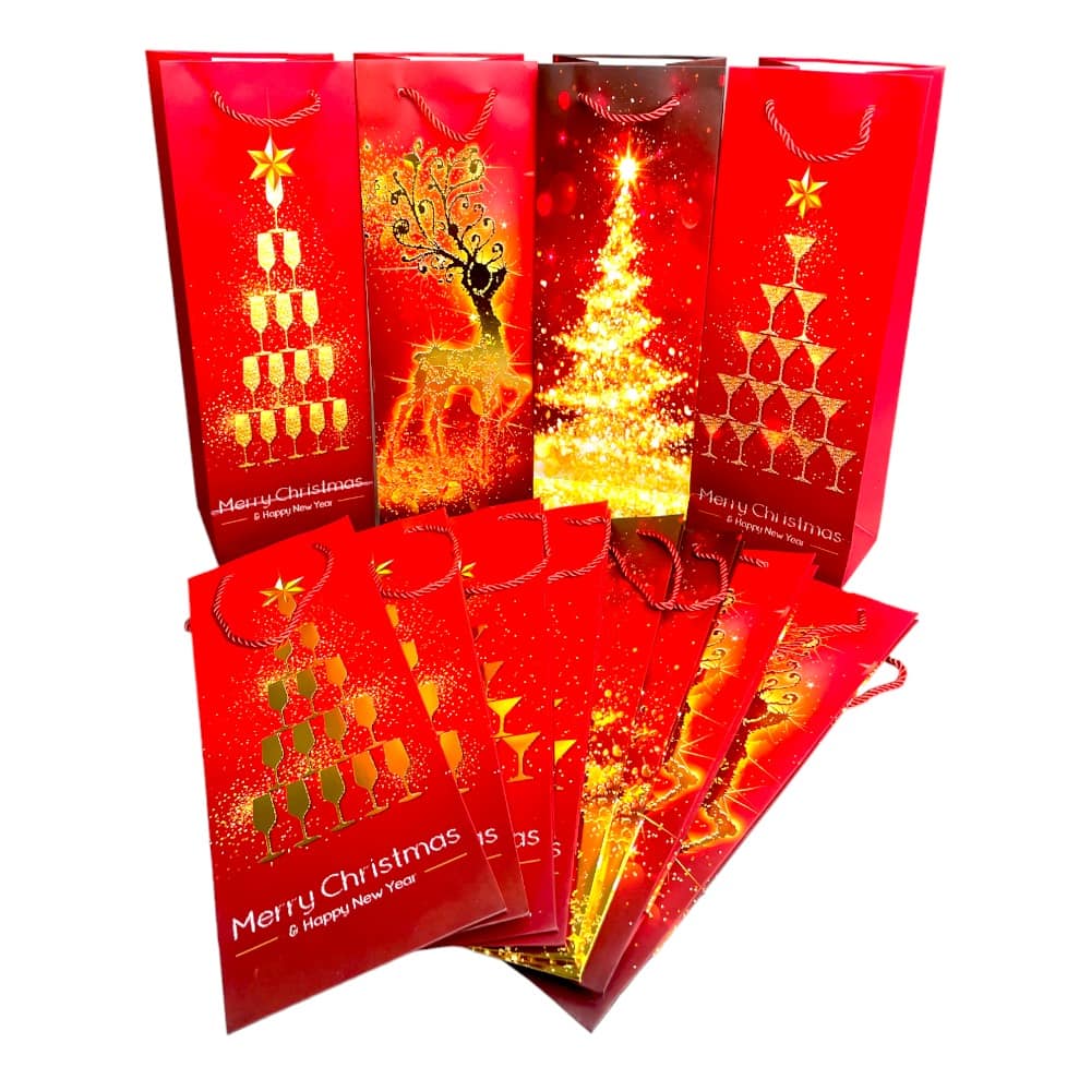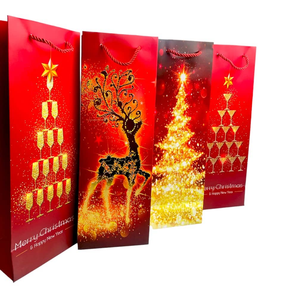 Pungi cadou Crăciun pentru sticle 35x10x12cm (set 12 buc) sunt soluția perfectă pentru ambalarea cadourilor festive.