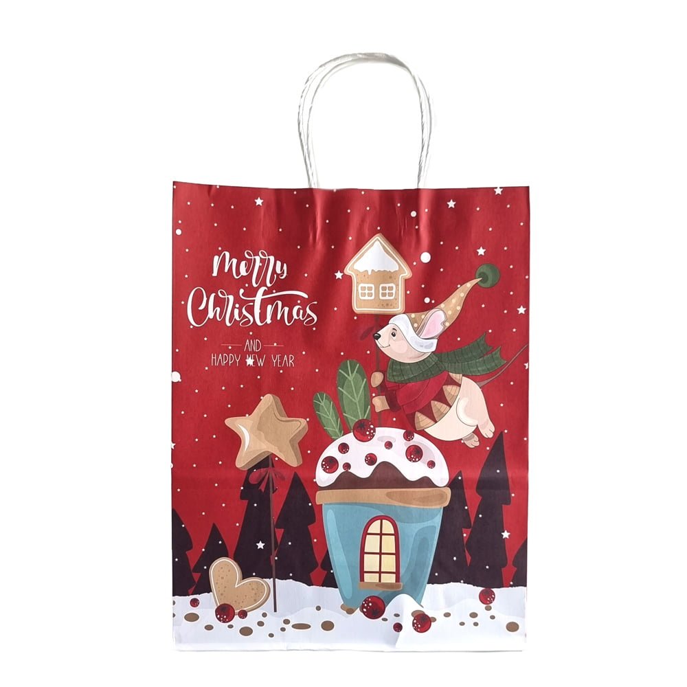 Pungi cadou peisaje de Crăciun mix 4 modele (set 12 buc)